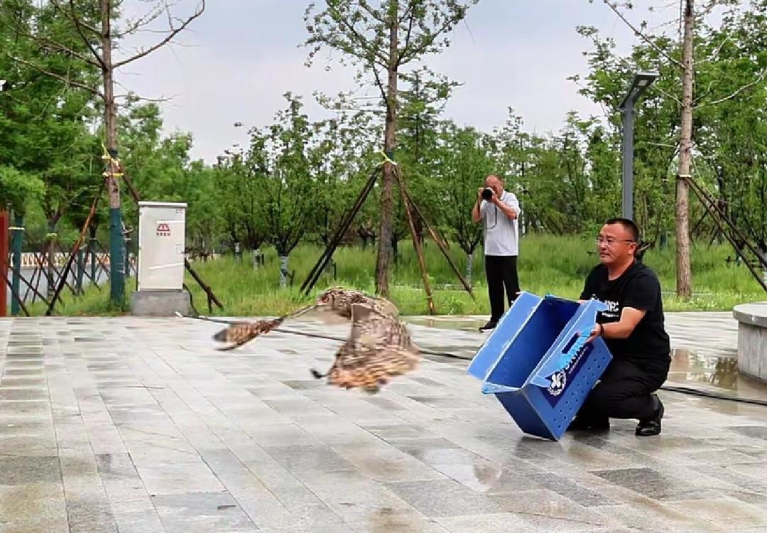 放生获救野生动物是室外活动的最后一个环节。在大家的见证下,猛禽救助中心的工作人员将伤愈康复的国家二级重点保护野生动物白尾鹞和雕鸮放飞山林。两只鸟儿振翅翱翔的那一刻,所有人都能感受到它们的快乐,也能领悟到人与自然和谐共生的真谛。