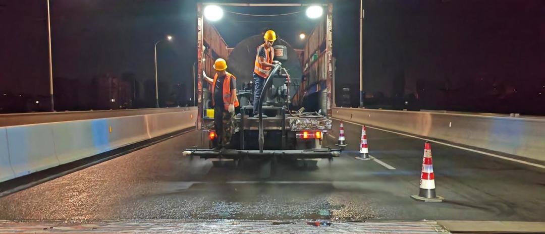 值得一提的是,在今年高架桥道路“护肤”中,项目团队还用上了新招式,使用含砂雾封层技术进行预防性养护。通过在道路表层喷洒含有细微砂粒的雾状封层材料形成保护膜,不仅施工速度快、维护成本低,还能够增强道路抗滑性、降低噪音、延缓老化。