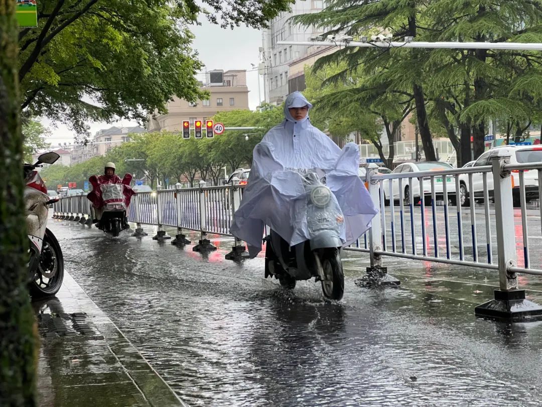 早上8点半左右,记者在塔城路城中路路口看到,大雨倾泻而下,来往车辆纷纷减速缓行。伴随雨水而来的,还有明显的气温下降,不少市民今天纷纷换上长袖和外套,以应对骤然“跳水”的气温变化。