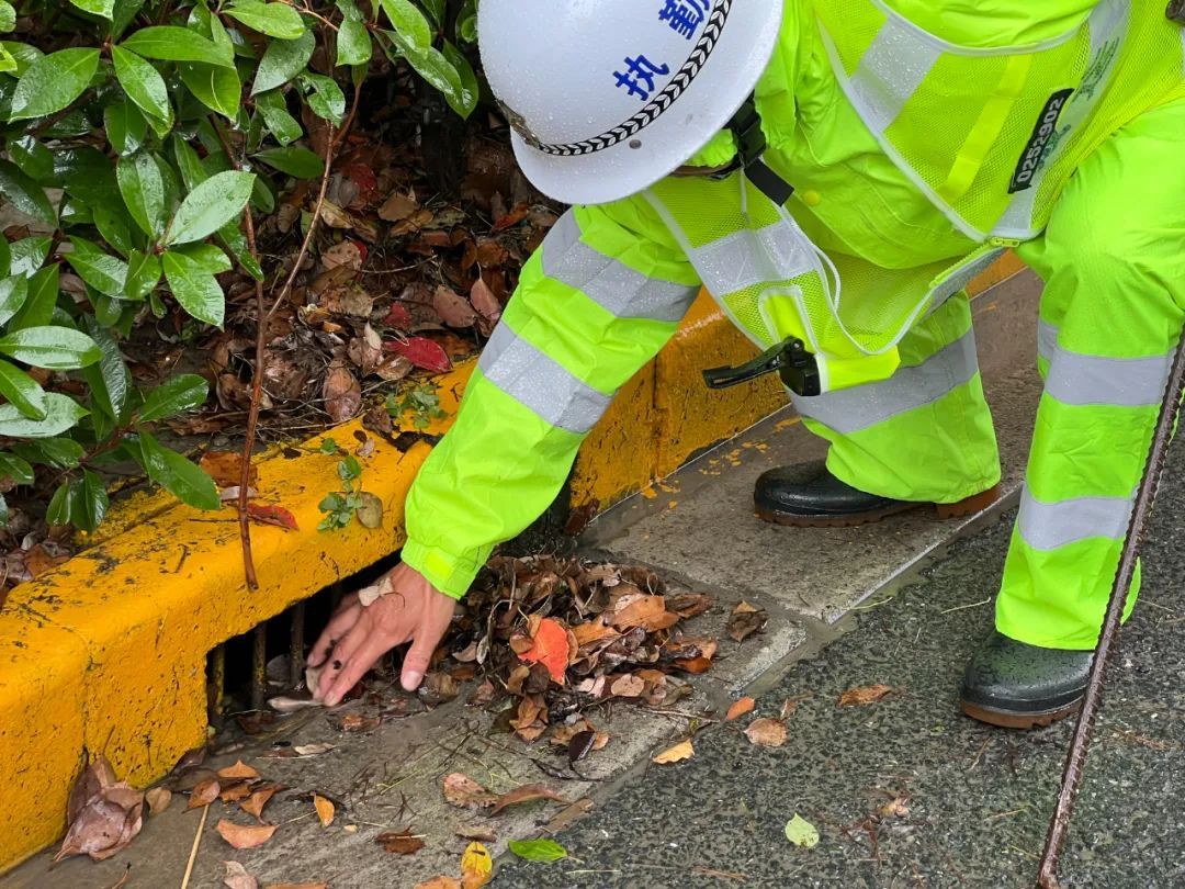 面对强降雨,嘉定各街镇迅速启动应急响应。在双单路附近,马陆镇希望片区的融合治理网格员王金云巡查发现路边排水口堆积了大量落叶,导致排水不畅,他立即戴上手套清理下水口,确保积水能快速排出。