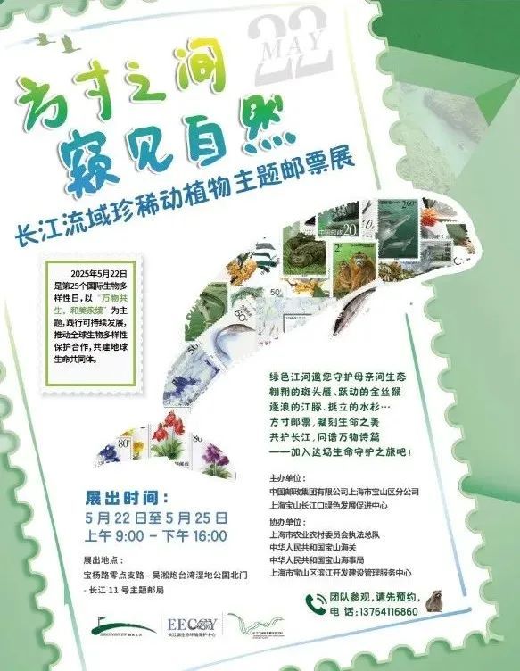 2025年5月22日是第25个国际生物多样性日。“方寸之间 窥见自然”长江流域珍稀动植物主题邮票展于当天在上海吴淞炮台湾国家湿地公园内的长江11号主题邮局拉开帷幕。此次展览以邮票为载体,生动展现了长江流域生物多样性保护的丰硕成果,吸引了众多集邮爱好者、生态保护人士及市民游客前来参观。