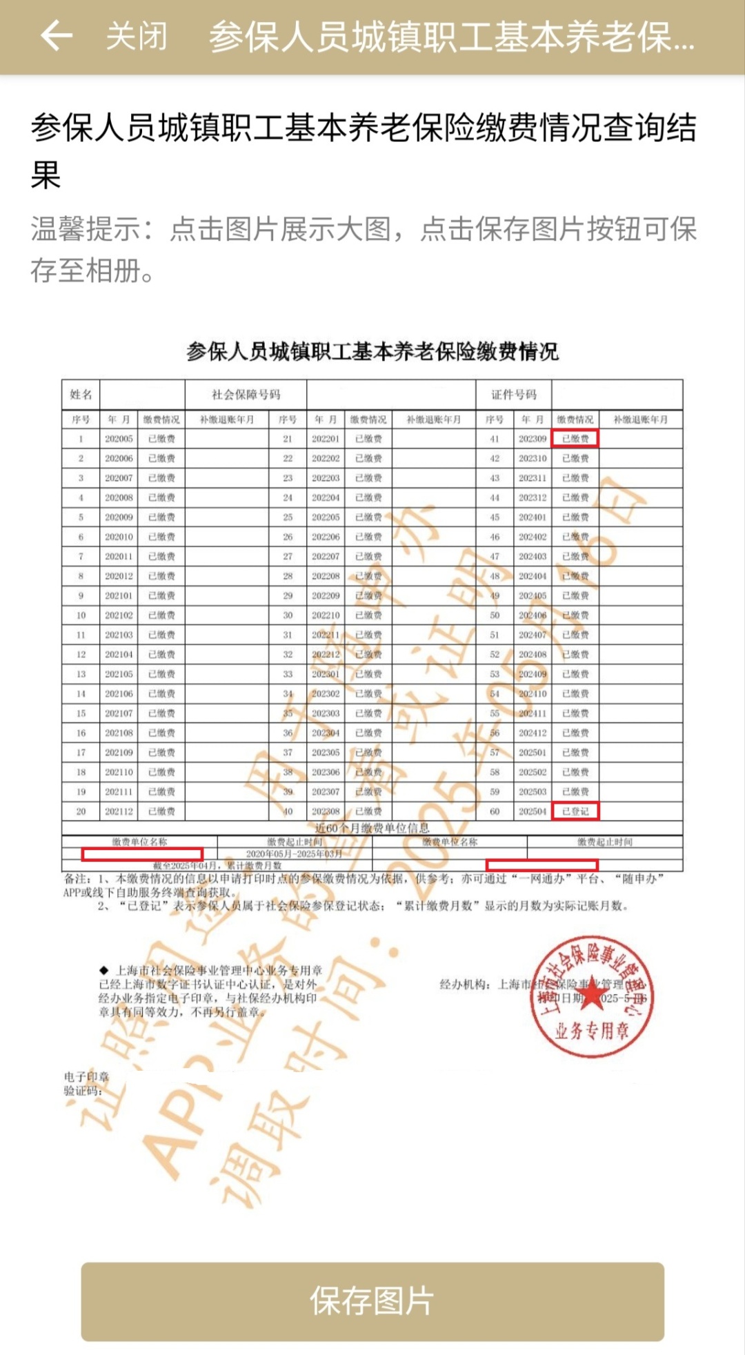 通过“随申办市民云”APP首页搜索“参保人员城镇职工基本养老保险缴费情况”;