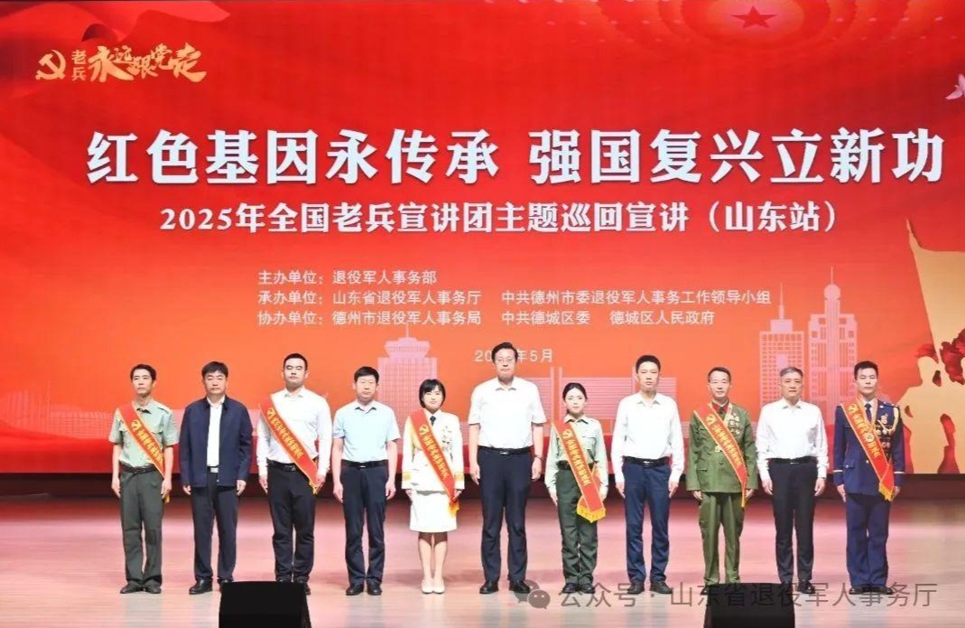 为持续强化思想政治引领,以榜样的力量合力唱响“老兵永远跟党走”的时代强音,5月22日,2025年全国老兵宣讲团“红色基因永传承 强国复兴立新功”主题巡回宣讲活动(山东站)在德州市举行。