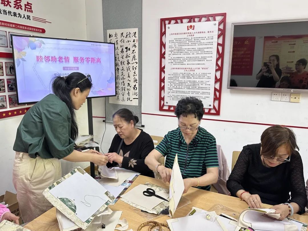 大家拿起针线,在社工和年轻志愿者的指导下,一丝不苟地开始了自己的创作。选料、裁剪、缝合、固定竹节环……不久,一个个色彩鲜艳、设计独特、造型别致的中式竹节手腕包便诞生了。看着自己亲手完成的作品,大家的脸上洋溢着喜悦和自豪。而年轻的社工和志愿者们也积极参与到社区活动中,通过小小的手作,大家不仅领略了中式传统手工艺的魅力,更在互助与分享中传递了温暖与情谊。