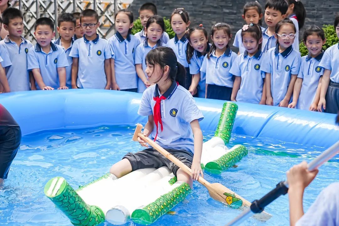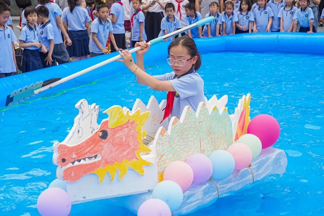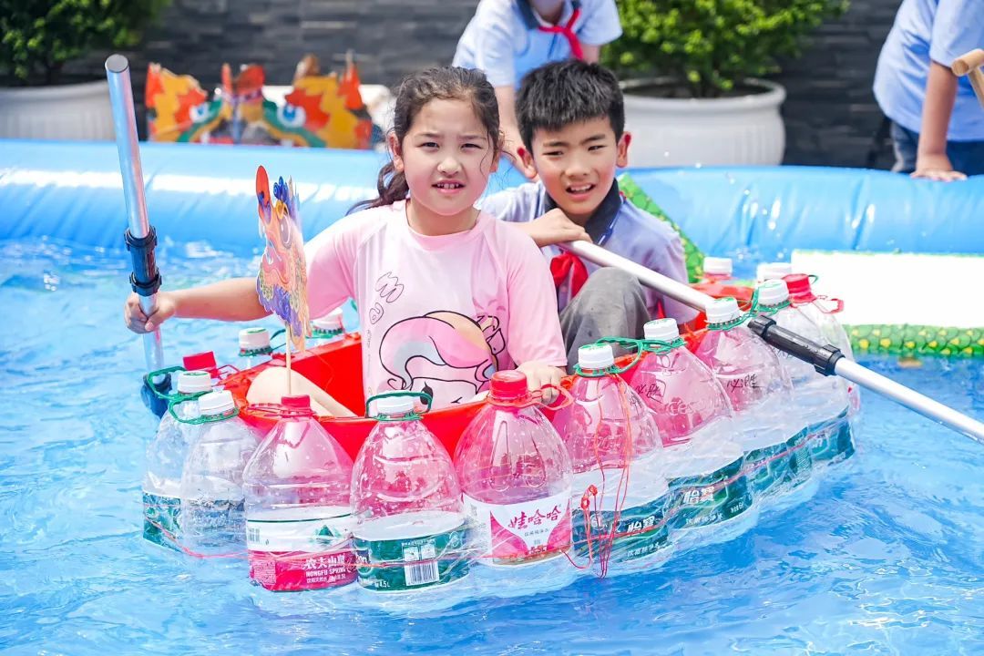 5月22日,同济大学附属实验小学的校门口出现了别开生面的一幕:一方水池中,学生奋力地划着自己制作的“迷你龙舟”。龙舟的制作材料五花八门,有泡沫箱、塑料盆、水桶、纸板等,展现了学生的奇思妙想。