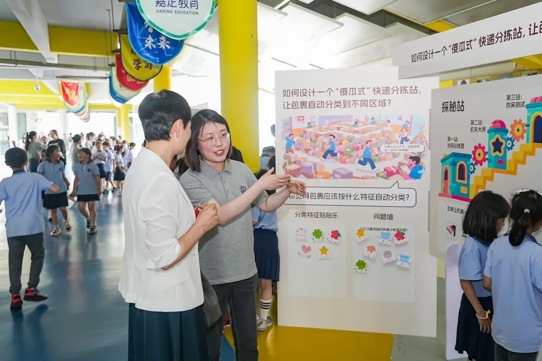当日,同济大学附属实验小学(简称“同济附小”)、同济大学附属嘉定实验小学(简称“同济嘉小”)共同举办“我也能成为那道光!”——“大思政课”视域下创意劳动与AI阅读成果展暨“双新”实践展示活动,展现学生在学校劳动智创节活动中的学习和探索成果。
