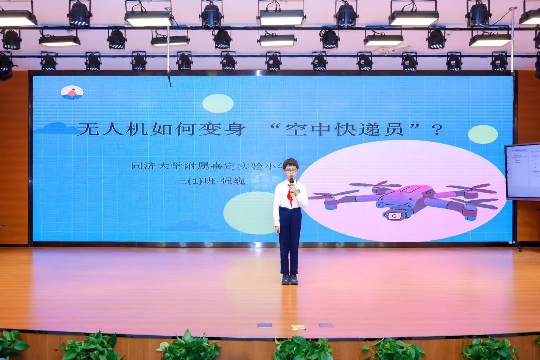 同济嘉小三(1)班学生强巍由无人机送外卖的应用,提出将无人机应用于快递服务的设想;同济附小三(1)班学生沈熠伟从分类小游戏中获取灵感,提出打造智能物流分拣系统;同济嘉小四(2)班学生李米研究了疫苗冷链物流之后,提出为疫苗设计一款恒温“外衣”,保障疫苗有效性;同济附小四(6)班学生徐梓脉提出在船舶上安装AI驾驶系统,能让船自动行驶、避开障碍物、稳稳靠岸……学生的创新火花在活动中点燃。