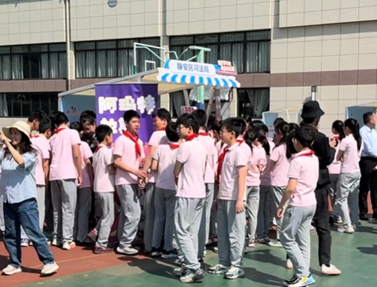 这种全新的“学法闯关赢藏品”的方式引发了学生的热烈参与。在近日举办的2025年静安区校园法治文化集市活动中,短短一小时内便吸引了近200名学生参与答题。
