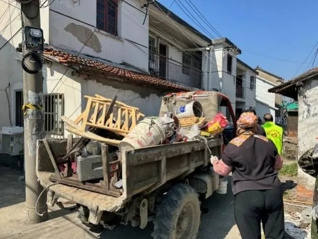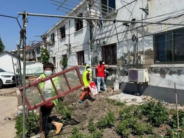 38弄的环境整治堪称一场立体攻坚战。社区组建“党员先锋+楼组长+施工队”的三级联动队伍:社区干部深入现场,逐户开展“敲门行动”化解疑虑;楼组长化身“移动广播站”,用乡音拉近沟通距离;第三方施工队创新“错峰作业”,避开居民休息时段。通过社区队伍的环境整治立体攻坚,集中清理了废旧家具、纸箱以及公共区域散落的杂物,原本堆满杂物的楼道和公共区域变得整洁敞亮。