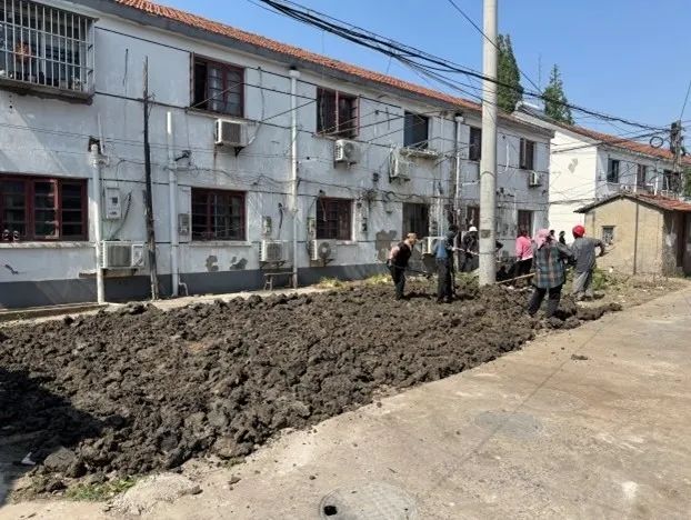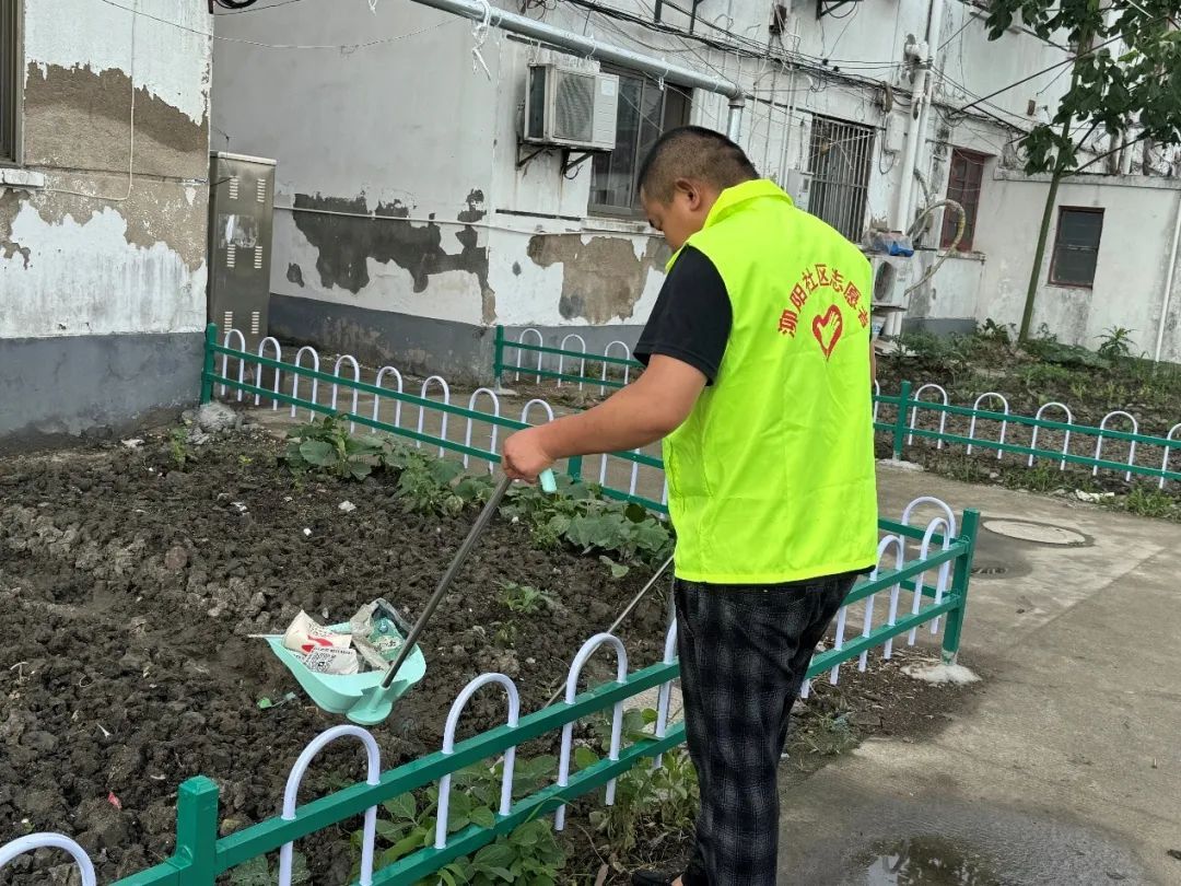 沈巷路38弄与沈巷村自然衔接,外来人口与本地老年人混居,开放式的居住格局与多元人口结构,受周边村民宅前屋后无序种植的影响,单纯采取“拔菜清杂”的刚性管理手段,易引发居民抵触情绪。基于此,泖阳社区转变工作思路,探索“疏堵结合、规范引导”的柔性治理路径,通过系统化改造将无序生长转化为有序治理:整治期间,泖阳社区居委会创新开展“书记接待日”活动,由党支部书记沈继勇全程驻守现场,以“现场办公”模式与居民开展面对面沟通,对不配合的居民现场说“法”;社区工作人员每天两次深入现场,动态收集居民意见,及时优化施工细节,让改造工程贴合民意;第三方施工队运来优质新土覆盖旧土;针对居民私拉晾衣绳现象,社区统一安装20个全新白铁管晾衣架,尽可能满足居民晾晒需求。