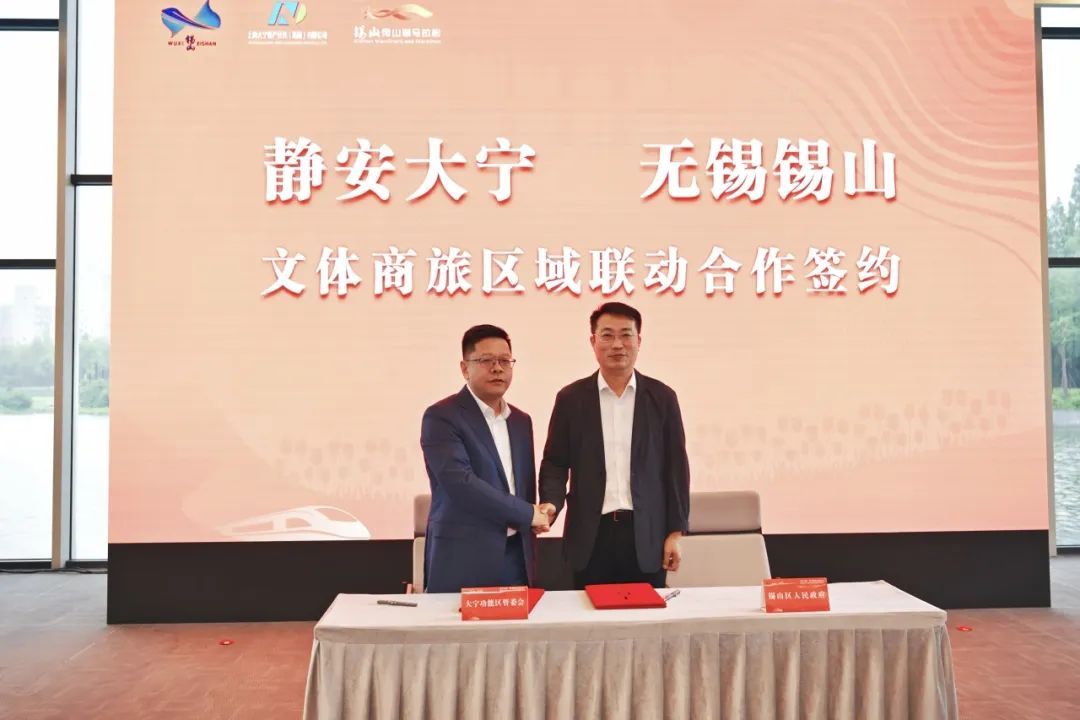 现场,上海市静安区大宁功能区管委会与无锡市锡山区人民政府签署静安大宁—无锡锡山文体商旅区域联动战略合作协议。