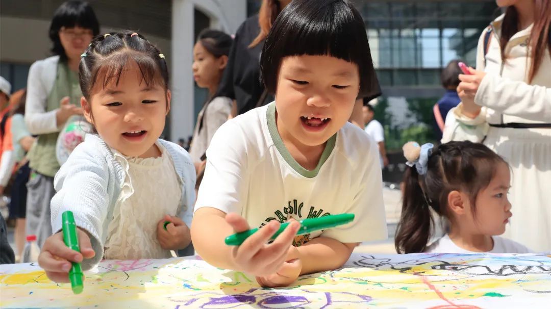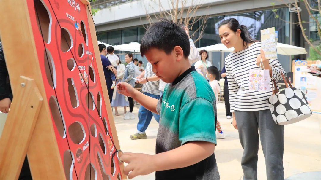 儿童市集精彩纷呈,区体育局打造的亲子互动运动区,以“运动力唤醒创造力”为理念,组织体能竞赛、亲子合作挑战赛等活动;儿童商品展销区聚焦“传统与未来”,汇聚了孩之宝、豫园股份、乐高、第一食品、中华铅笔等12家关注儿童友好的代表性企业,体现黄浦企业在新时代的生命力与社会担当;区妇联“家+书屋”项目以定制书车构建移动书房,设置“光荣之城”“Shanghai Taste”等六大展区;在健康宝贝区,区卫健委的九大摊位聚焦儿童心理、营养与感统,“心搭子”心理健康专线吸引了在场家庭驻足;在绿色低碳区,区发改委和绿委办以可感知、可参与的方式,构建了儿童与生态的连接场;在艺术创想区,区教育局及思南路幼儿园、同济黄浦创意中学、区特殊教育职业学校以组团式摊位精彩诠释“用教育激发创造”的理念,聚焦艺术启蒙与未来素养培育;区文旅局的黄浦非遗板块特别设置香囊制作工作坊,邀请非遗传承人为在场家庭介绍海派木偶戏和里弄风筝等传统项目;在未来科技板块,区青少年科技活动中心探索“AI+非遗”融合路径,展示AI绒绣设计与创作;守护联盟板块由区民政局、区女律联携手积极拓展儿童友好行动的边界,不断将儿童友好理念融入服务细节;团区委展示了“黄浦领鹰”少先队风采,通过趣味互动激发青少年的责任意识与集体荣誉感;市公安局刑侦总队的警犬“安保员”、小红书的“薯宝宝”、iSTART儿童艺术节猫咪车都是现场小朋友排队合影的“网红”。