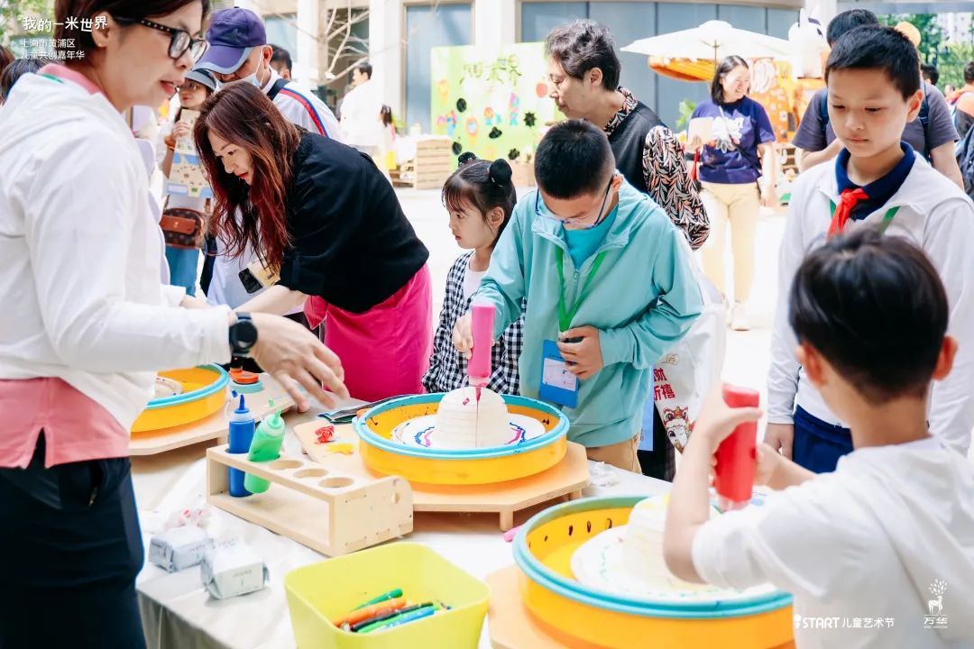 值得一提的是,由黄浦儿童参与设计的嘉年华游戏贯穿全场,同一时间有16位由小学生扮演的游戏角色与观众进行游戏互动。“儿童共创零距离小站”摊位展示了本次嘉年华的共创全过程,“种子大麓计划”摊位由iSTART儿童艺术节介绍“种子馆长”“小策展人”“小编辑部”等儿童共创项目,蓬莱二小的“魔法小书店”成为了出版梦的孵化地,市集现场的摊主也正是这些手绘书的作者。