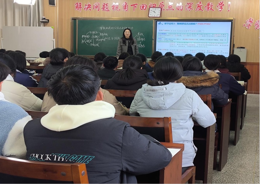 政治组紧扣“立足课标,用活教材的素养教学”核心目标,“立足课标深耕教材、分级联动培育素养”的系列教研活动,创新实施“年级分工、课型突破”教研模式,组织高一、高二、高三年级骨干教师分别聚焦新授课、讲评课、复习课开展专项研究,形成系列教学成果。