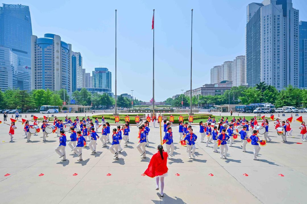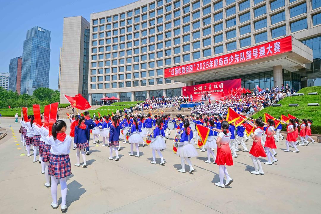 5月24日,由共青团青岛市委、青岛市教育局、青岛市少工委联合举办的“红领巾爱祖国”2025年青岛市少先队鼓号操大赛在青岛市级机关1号办公楼楼前广场举行。来自全市的20支鼓号队、600余名少先队员和少先队辅导员代表参加了活动。