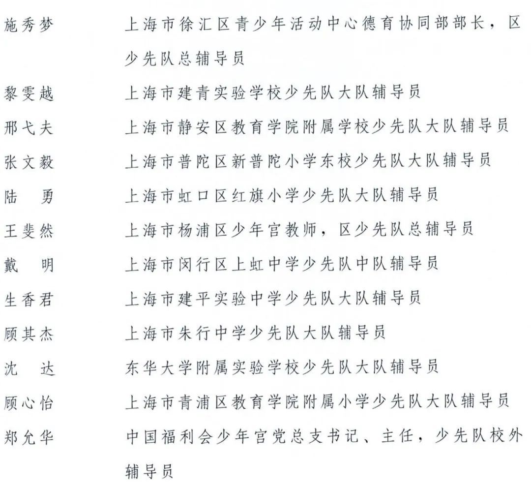 上海共有12位少先队辅导员入选“全国优秀少先队辅导员”,18个少先队集体入选“全国优秀少先队集体”。一起来看名单↓