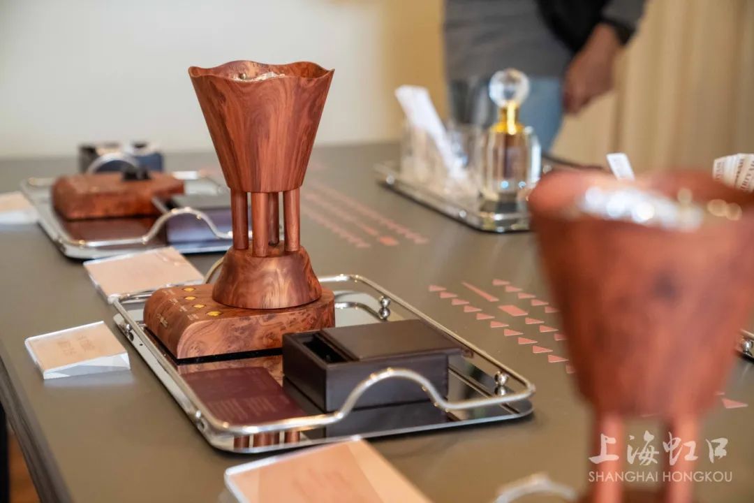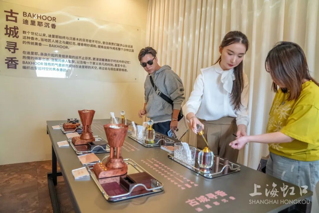 闻香体验区陈列的一众珍稀香料引发排队热潮。在“气味时光机”装置附近就飘飘着一股幽香,记者闻到香料气息的瞬间,眼前浮现出沙漠商队影像,驼铃声就在耳边回响。