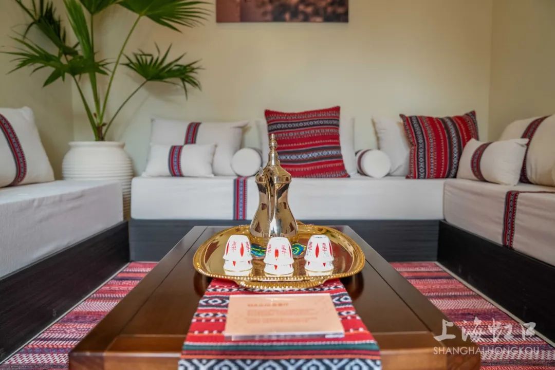 穿过大门仿佛瞬间置身于复刻的沙特传统庭院。张女士正轻抚墙面:“这些建筑纹理和纪录片里看到的一样,很有异域风情。”