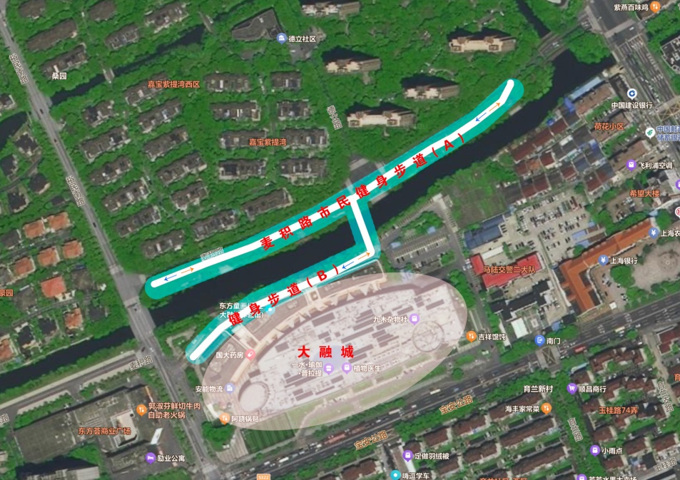 施工期间,健身步道封闭,具体封闭范围为大融城路段、麦积路裕民南路段和麦积路沪宜公路段三个路段的全部区域,预计7月初向市民重新开放。