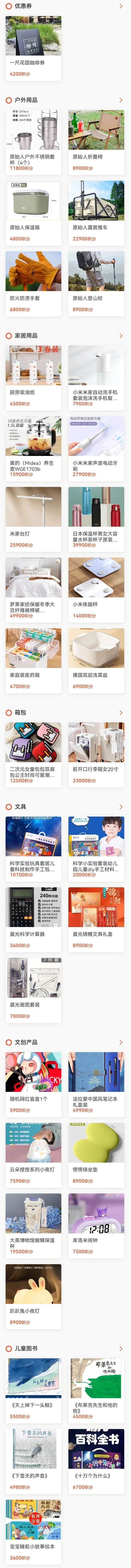 兑换优惠券、各种用品等