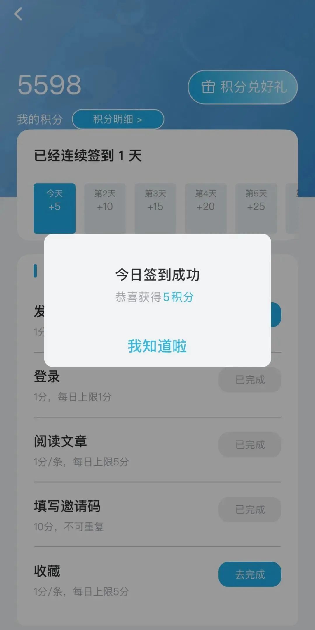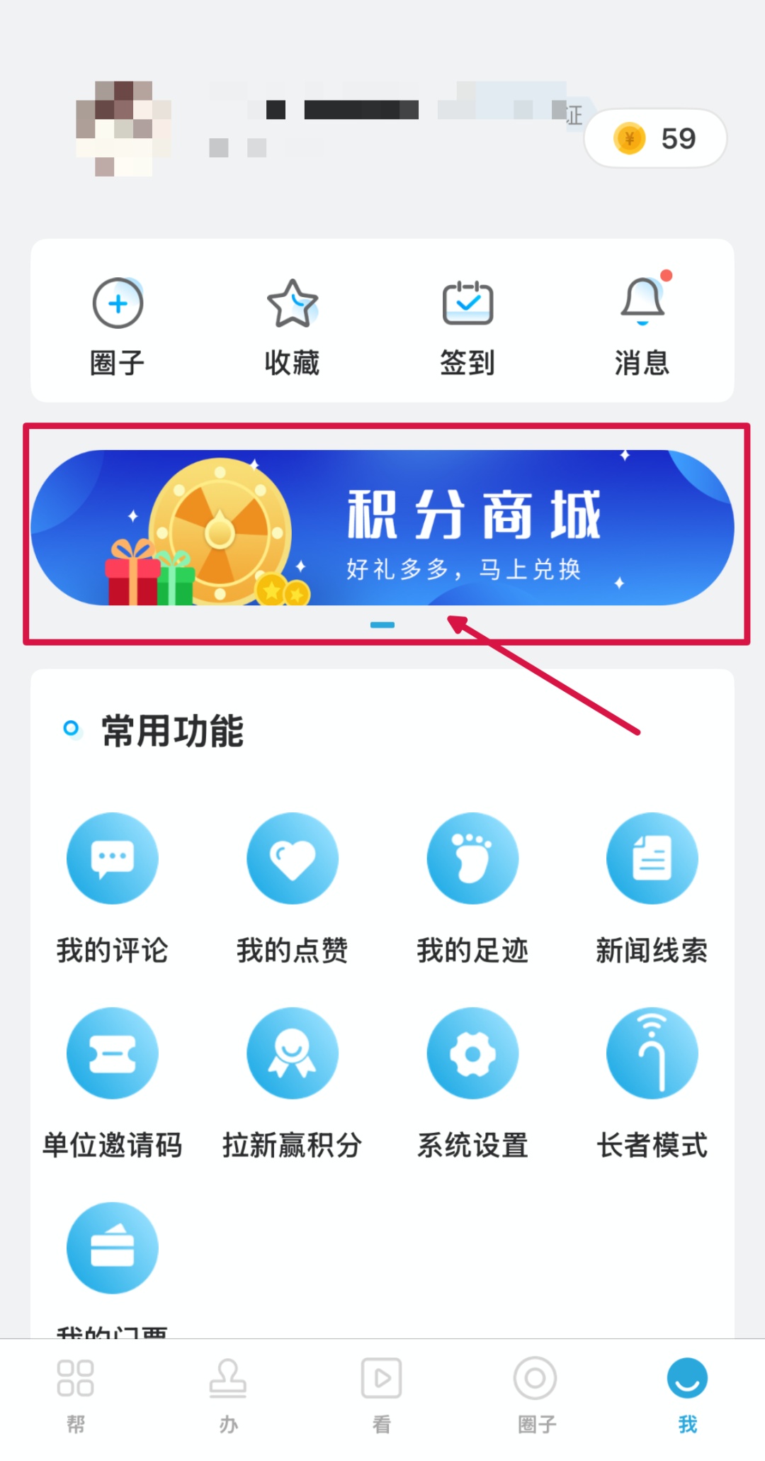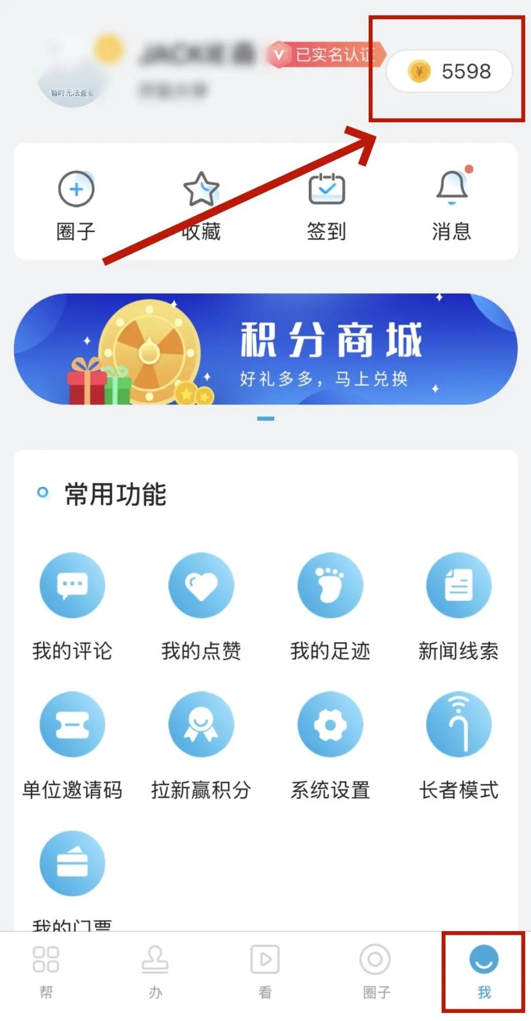 点击右上角进入我的积分板块