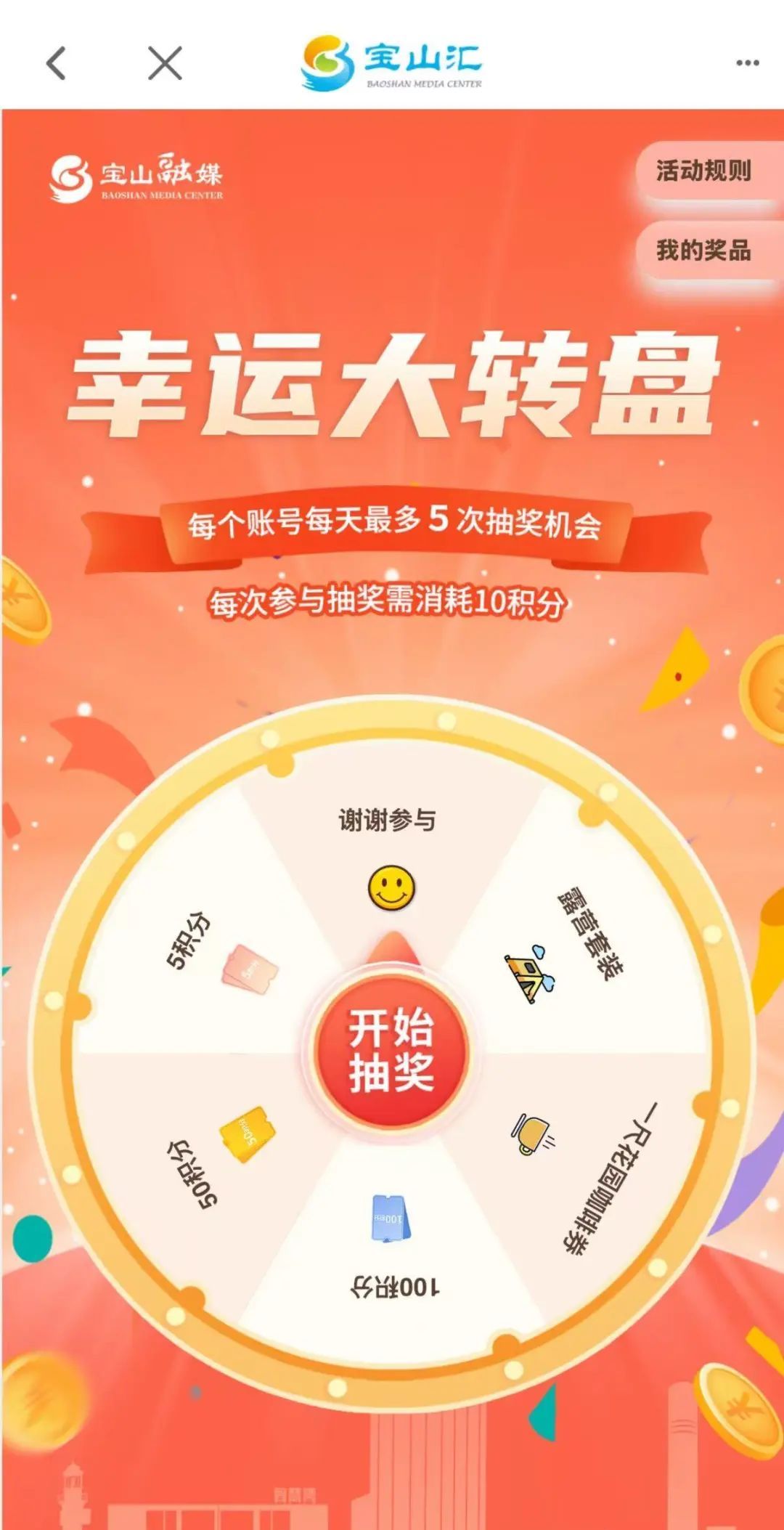 每次参与幸运大转盘需消耗10积分