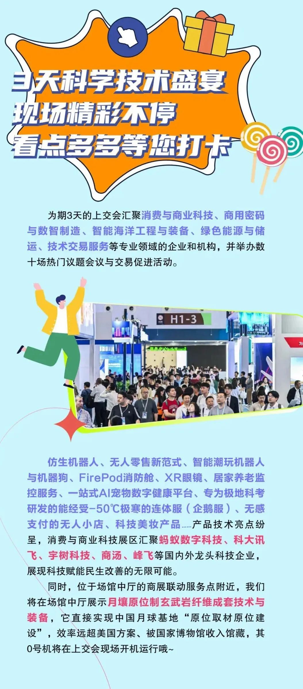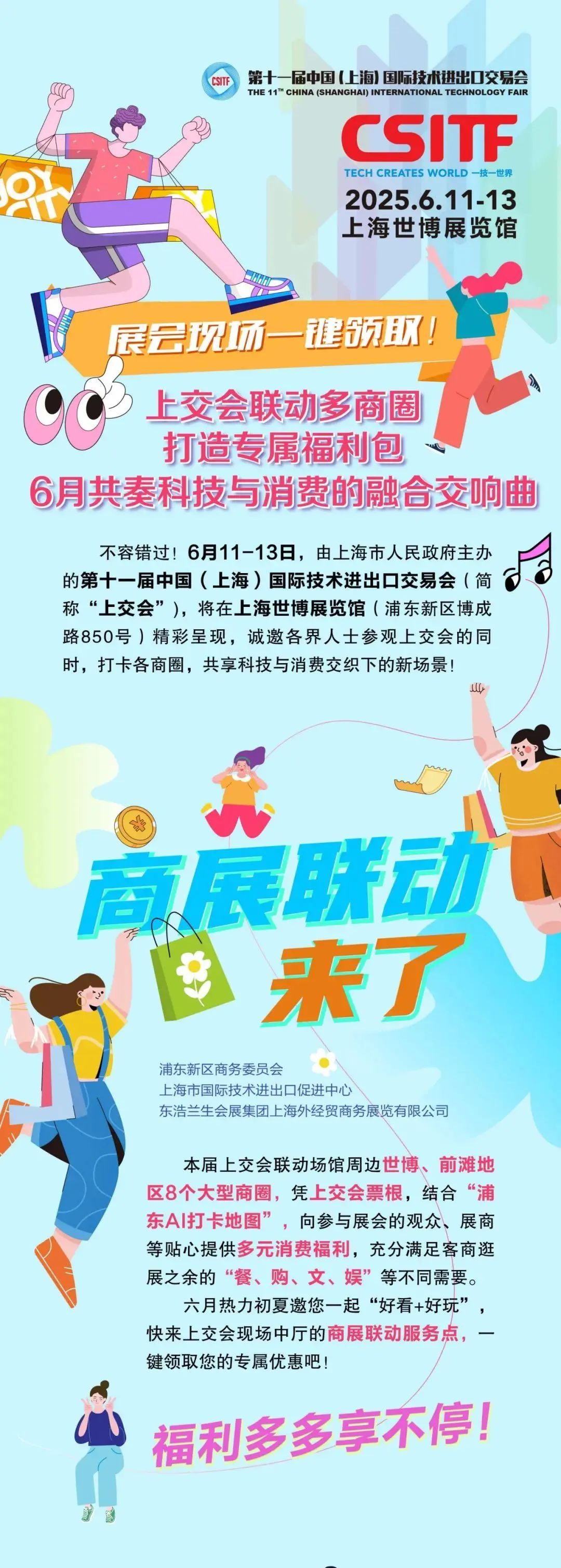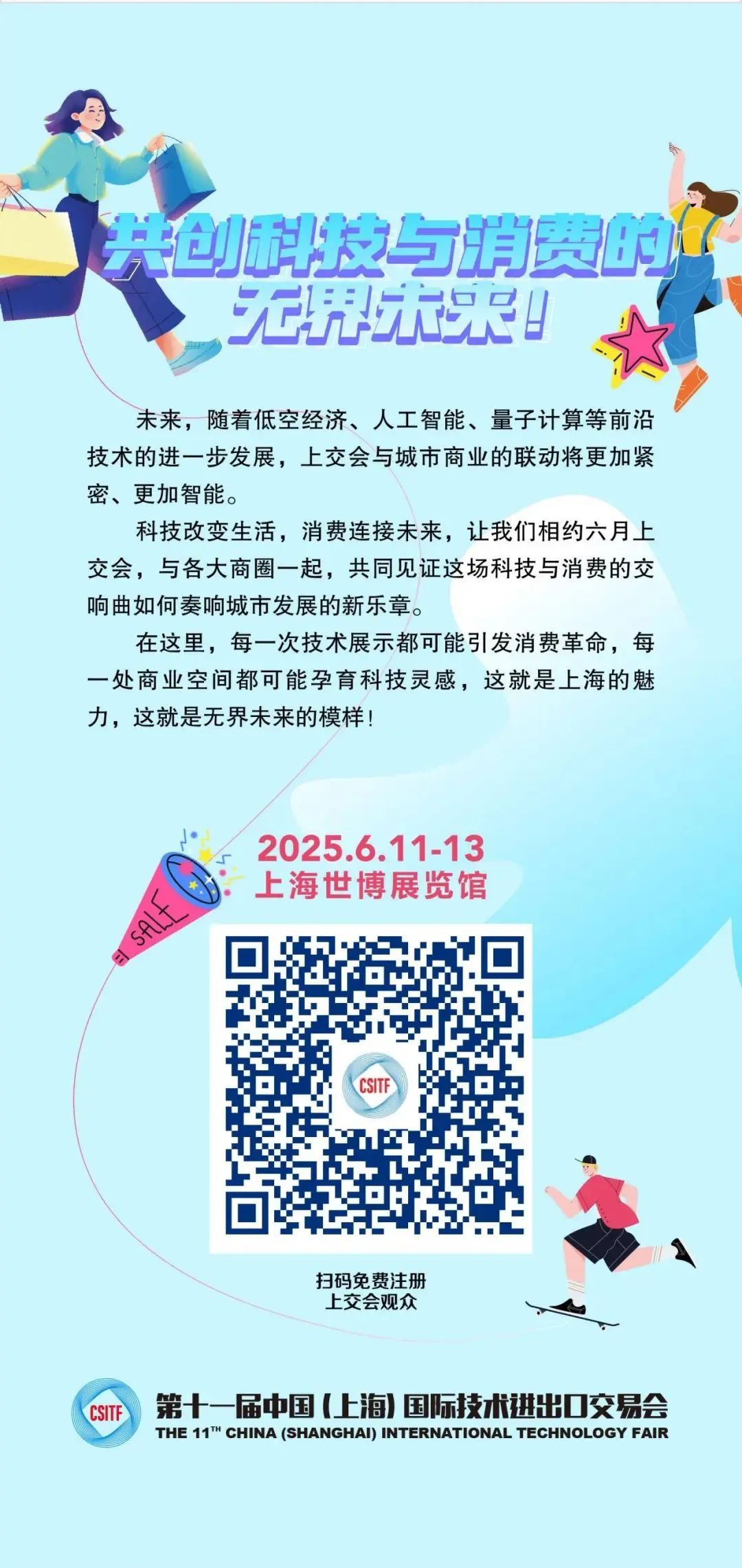市商务委介绍,6月11日至13日,第十一届中国(上海)国际技术进出口交易会将在上海世博展览馆(浦东新区博成路850号)精彩呈现。展会期间,一系列“好看+好玩”的活动也将同步开展,邀请大家共享科技与消费新场景!详见↓