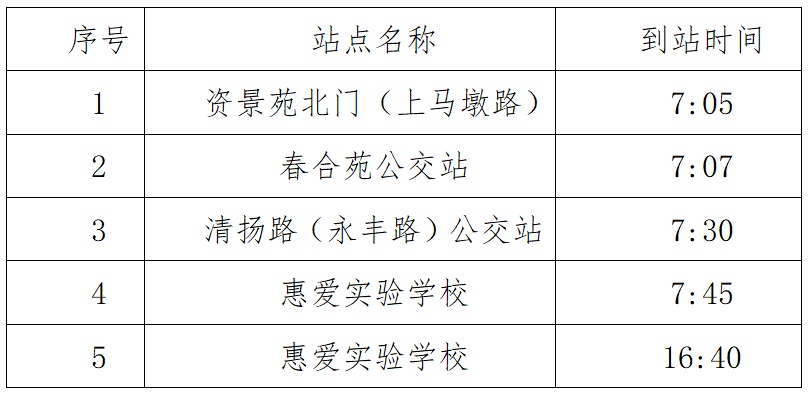 由资景苑北门(上马墩路)出发,沿上马墩路、友谊南路、春潮路、学前东路、解放南路、南长街、永丰路、清扬路、清名路、南湖大道,到达惠爱实验学校。预计行车时间40分钟。