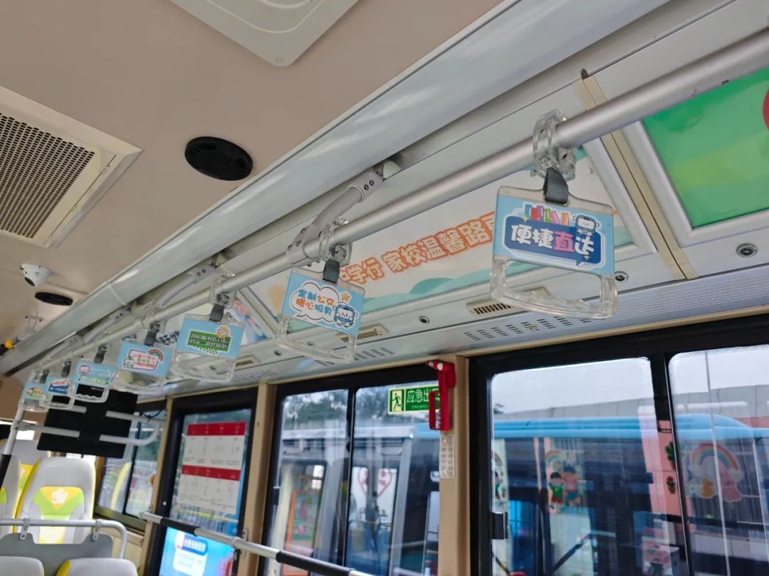 与此同时,为了方便学生更直观了解站点信息,工作人员还特意定制了一批学生的姓名牌与站点手举牌,用不同颜色对应相应的站台,在行车过程中能更直观地提醒学生提前做好下车的准备。