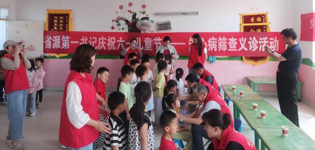 在“六一”儿童节来临之际,为切实保障儿童健康,提高先天性心脏病的早筛早治率,滨州医学院省派第一书记积极作为,邀请滨医附院心脏大血管外科董圣军医疗团队,于5月28日分别在阳信县水落坡镇幼儿园和张马村幼儿园开展了先心病筛查义诊活动,为孩子们送上了一份特别的节日礼物。