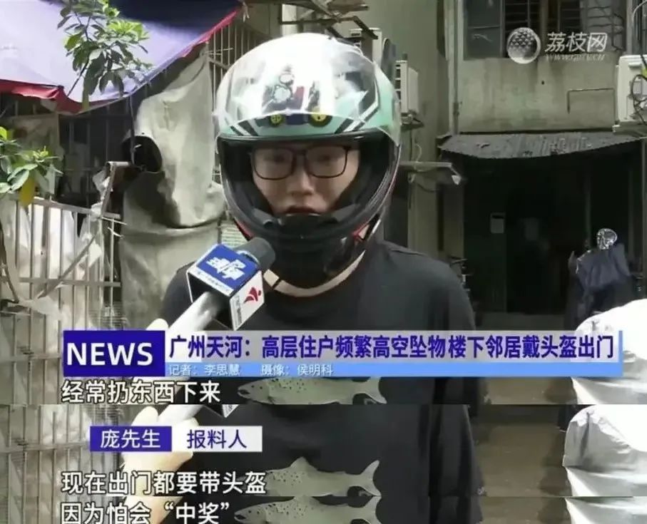 近日,有报道称,广州市天河区棠德花苑小区有一对家住9楼的母女经常高空抛物,有业主无奈戴头盔出门。该小区还有居民表示,已受高空抛物困扰好几年。