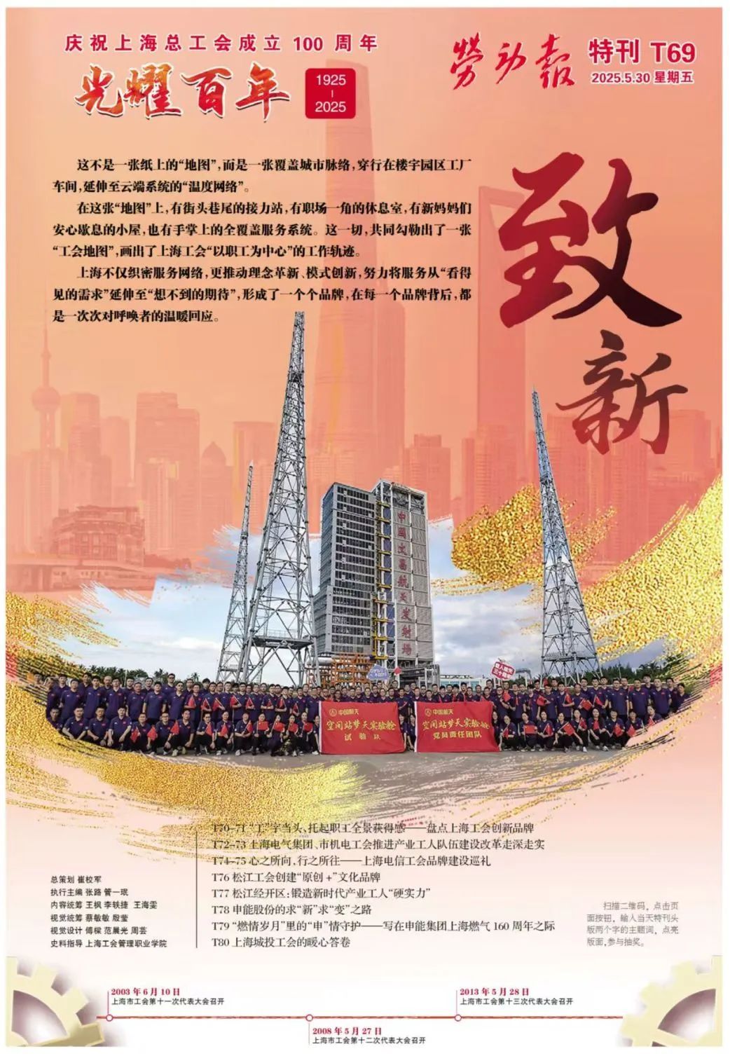 从5月25日至5月31日,劳动报连续刊发7期共100版“光耀百年·庆祝上海总工会成立100周年”特刊,今天推出第六期《致新》。
