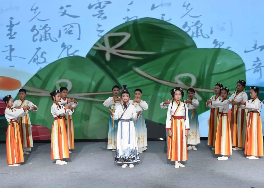 舞蹈《过端午》《五彩端午》以童趣形式传递端午文化魅力,情景剧《楚国来了未来客》创新演绎传统与现代的时空对话,歌舞《橘灯漫天》、合唱《带我到山顶》等节目则融合艺术与德育,彰显立德树人成效。