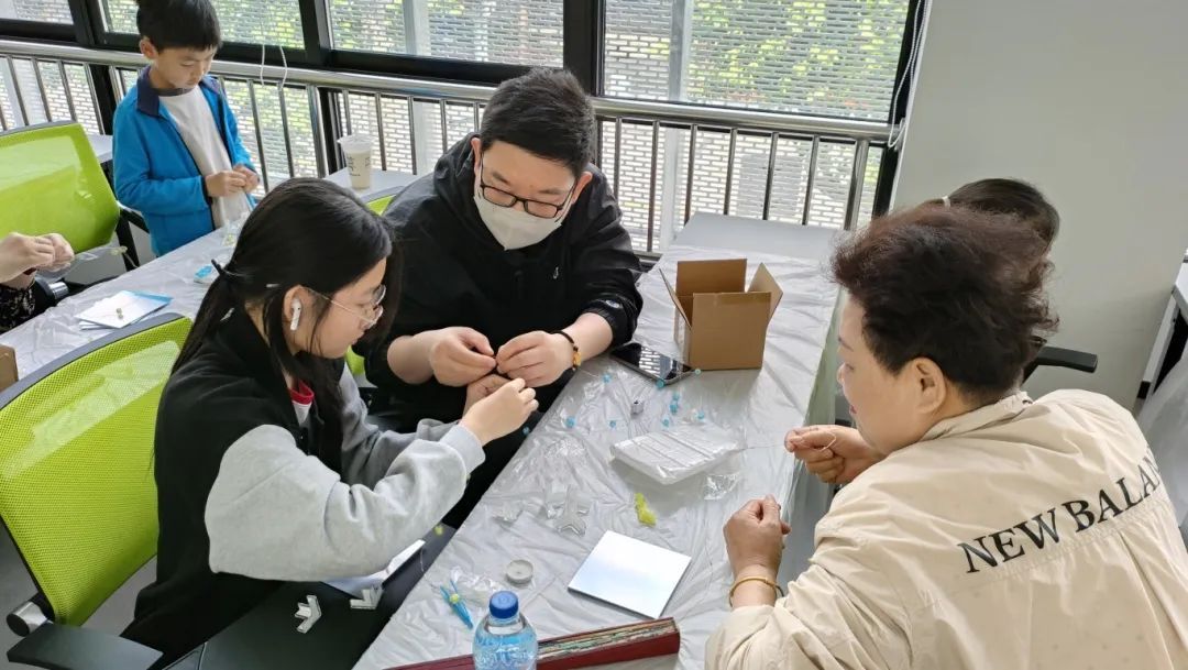 活动现场,树脂花瓣在灯光下流转温润光泽,LED小灯串如繁星初绽,十余组家庭以创意为笔、温情为墨,共同绘就一幅璀璨的亲子星空图。