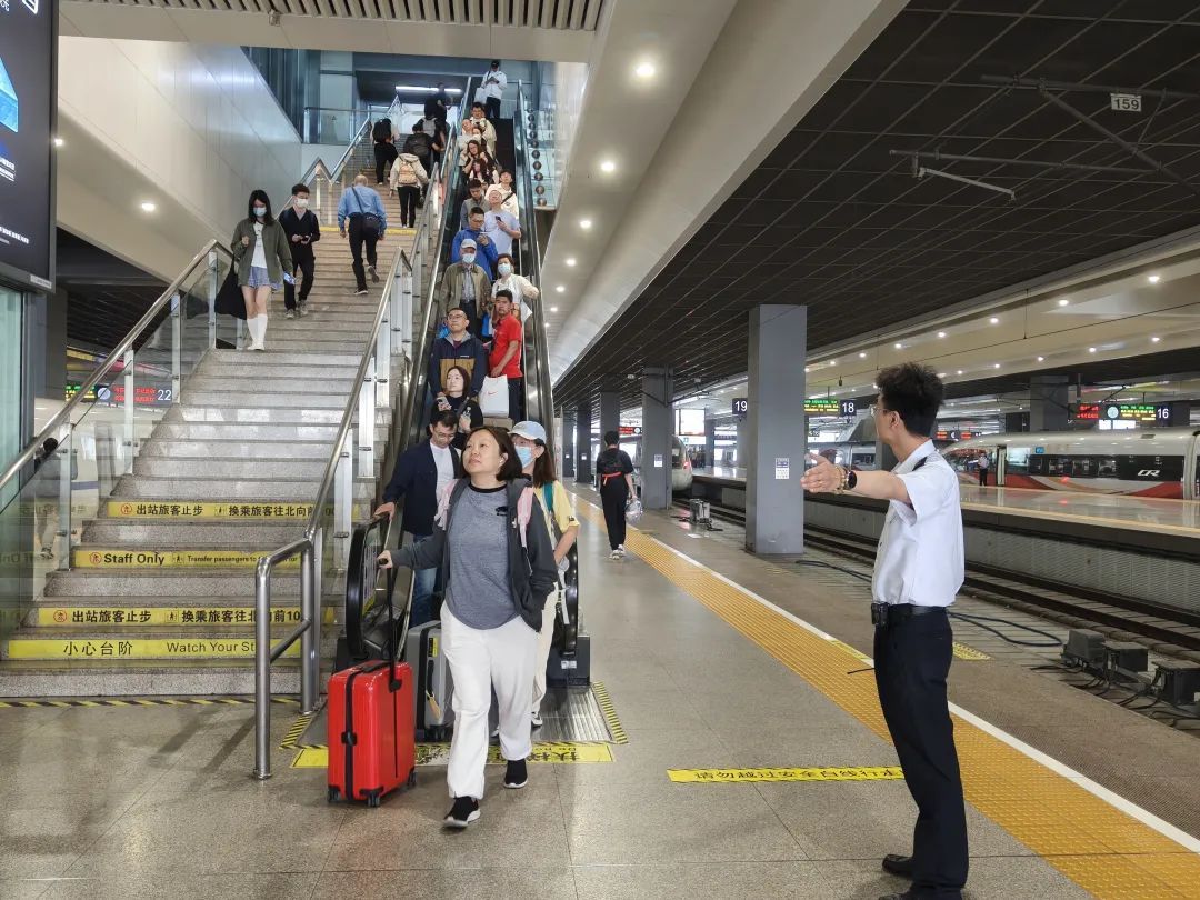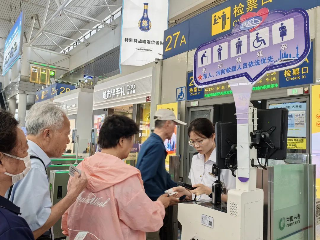 进出站口、站台、候车室、电梯等客流密集处增设工作人员和志愿者,为旅客提供问询解答、方位指引、重点帮扶等服务。