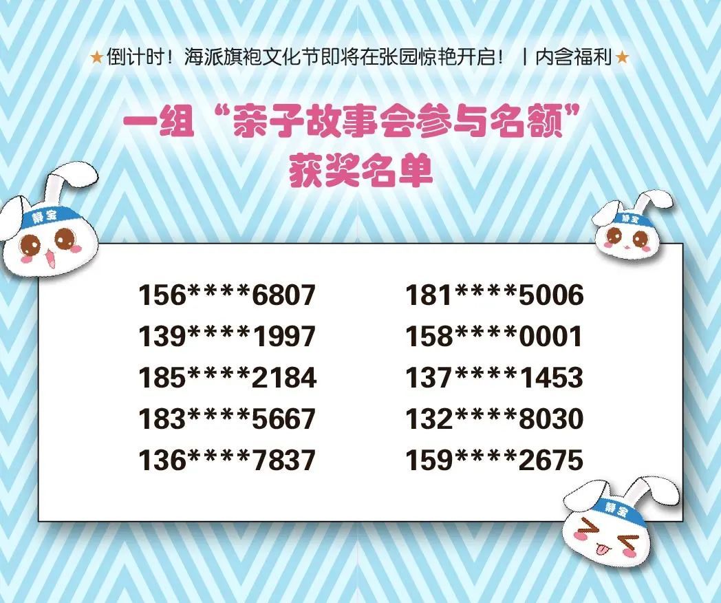 此前静宝推送的《倒计时!海派旗袍文化节即将在张园惊艳开启!丨内含福利》中奖名单已经出炉!详见↓