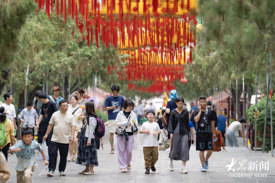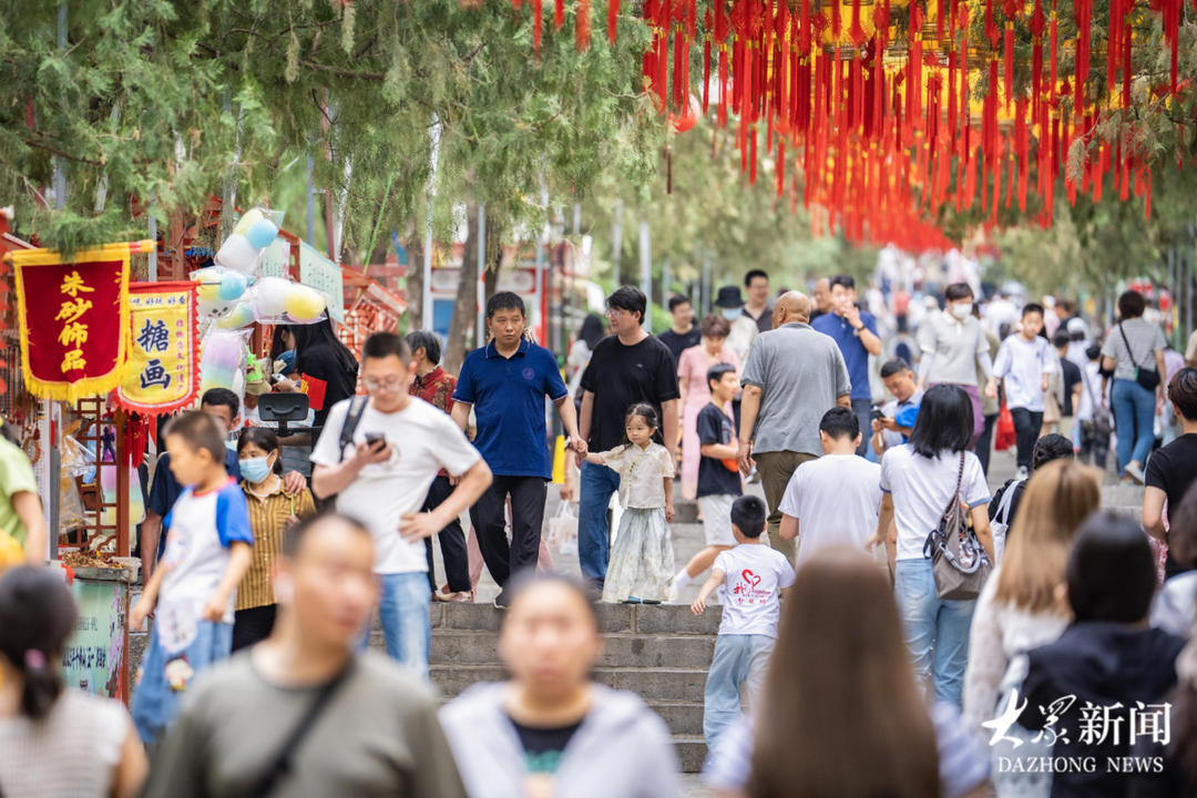 端午假日,游人如织。5月31日,在济南千佛山景区,不少市民和游客前来登山游玩,享受假期。据了解,景区内,包含非遗手造、特色文创、清凉美食在内的创意市集,包括传统戏曲、少儿歌舞、乐器演奏在内的文艺汇演在千佛山景区主山路、闻韶台等地精彩亮相。