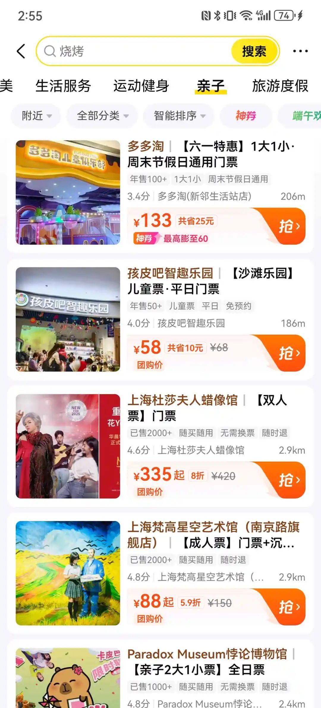 上述平台用户调研显示,近七成用户希望在线上找到更丰富有趣的亲子活动,同时具备更优惠的价格。新鲜好玩上,平台集结多种新奇玩法,如跳方格、亲子密室、儿童职业体验、沉浸式奇幻剧场等,给孩子带来不一样的童年体验。质价比上,在节假日的票种上提供六一儿童节专属的平台补贴,同时叠加神券折上折,头部品牌如奈尔宝、Minimars、反弹蹦床、风云再起等,都有六一好价,让家长能够实现高性价比遛娃。