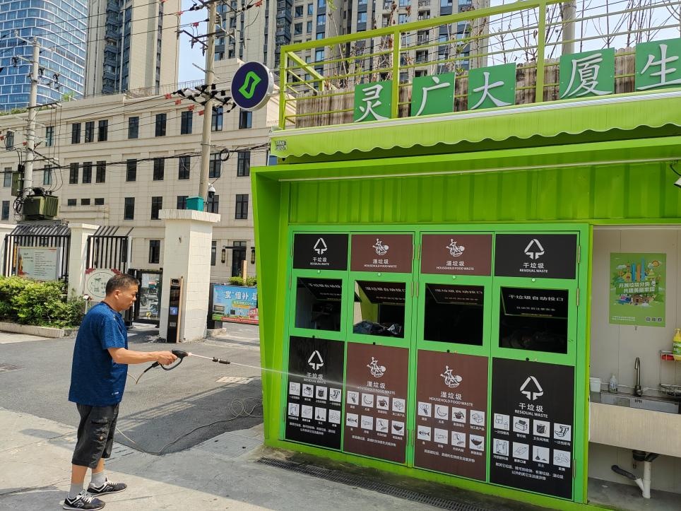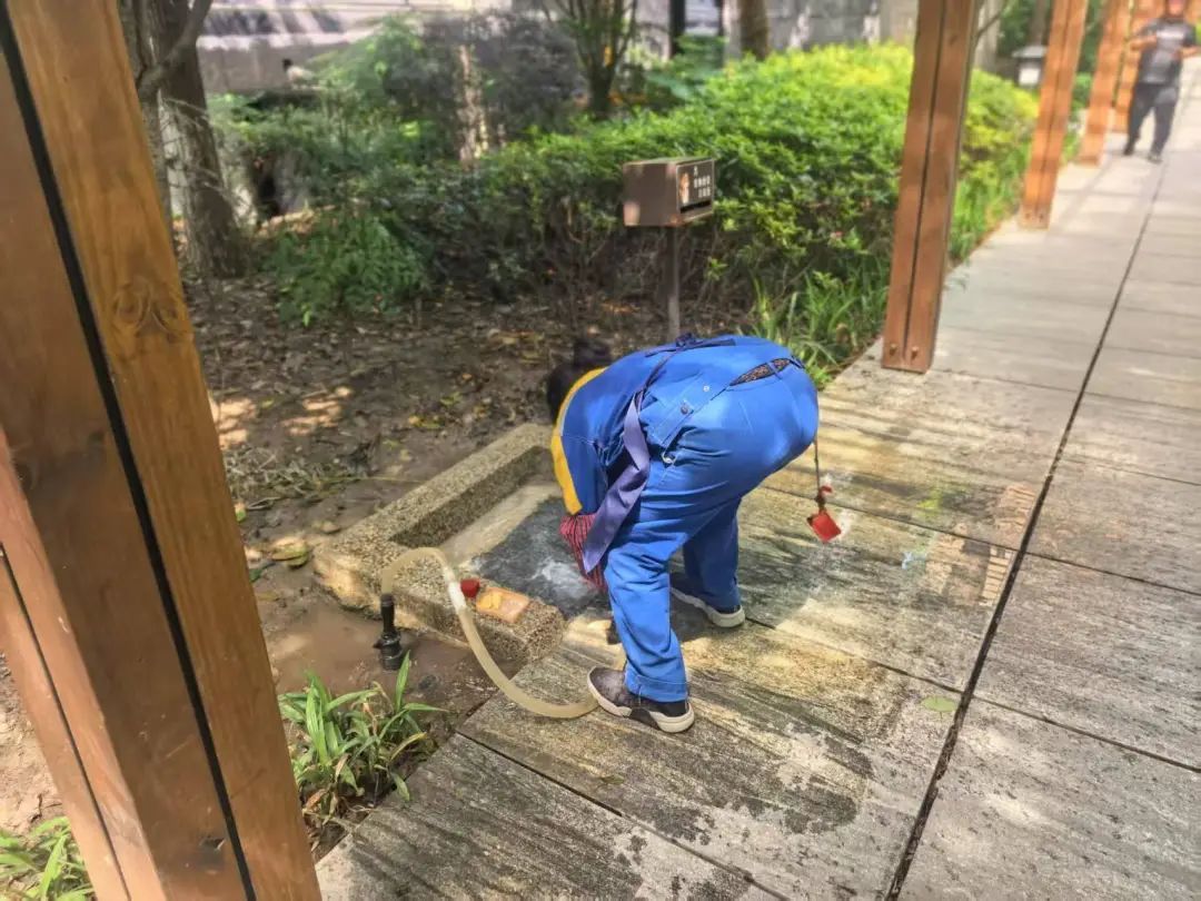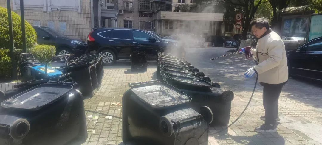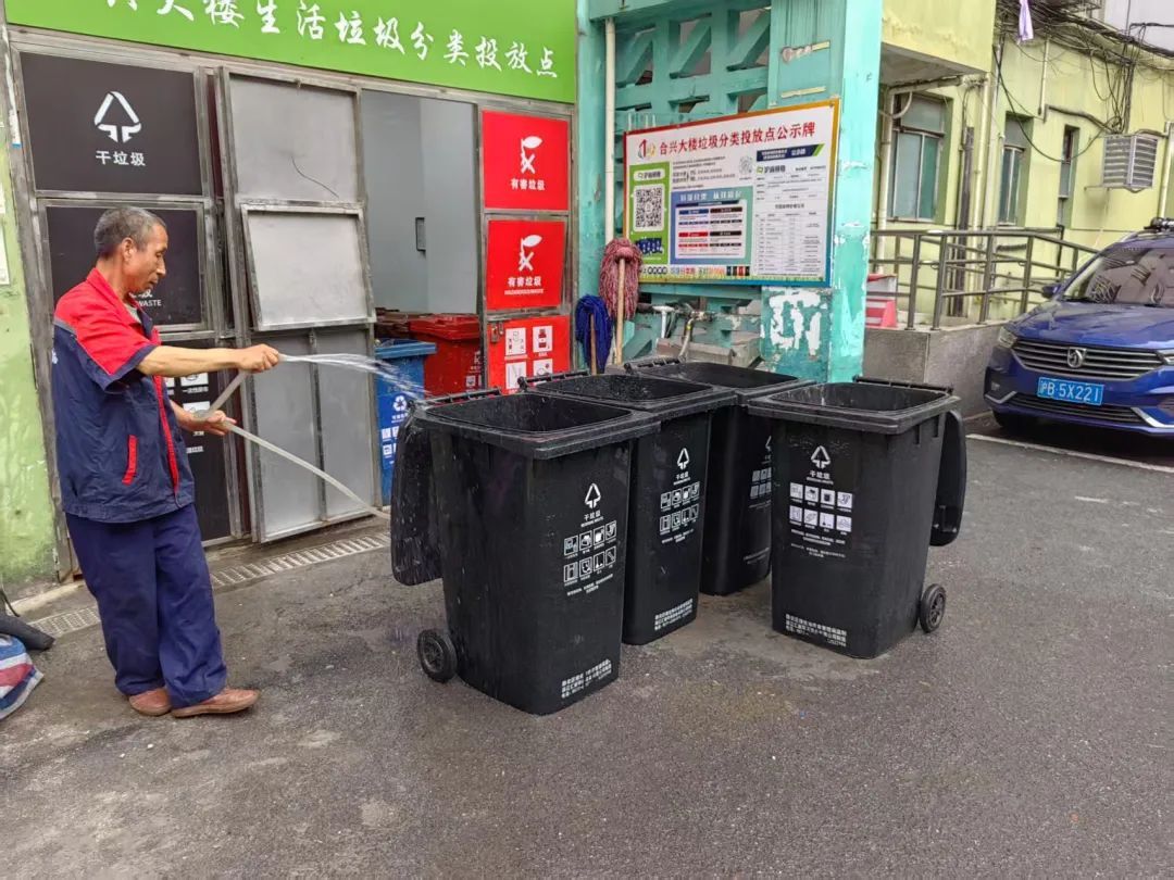 一方面,针对生活垃圾房、分类投放点、清运交付点等易污染区域,环卫保洁人员使用水枪进行全面冲刷,不放过任何一处卫生死角,让投放环境焕然一新。