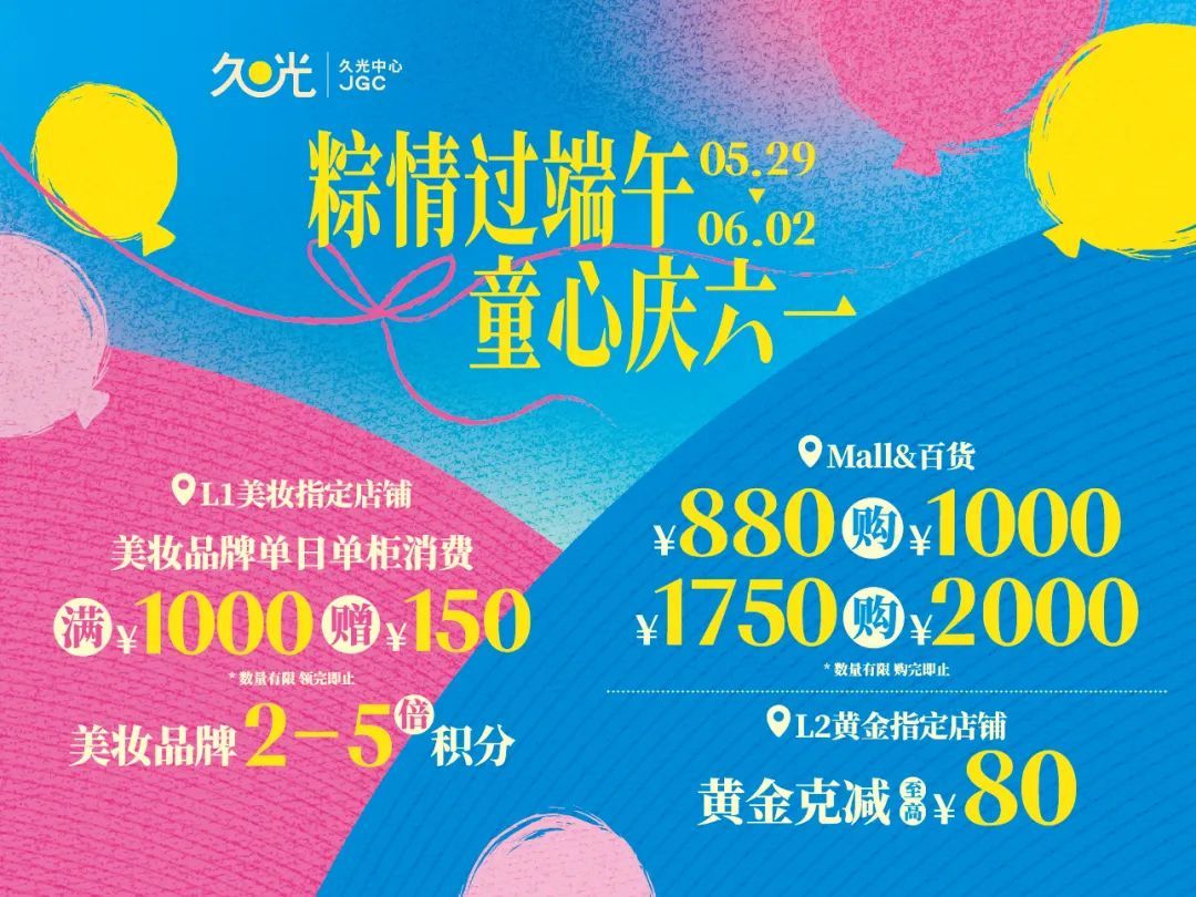 5月29日,上海久光中心开启“粽情过端午 童心庆六一”双节庆祝活动,向消费者推出钜惠福利,同时还策划举办“无处不儿童”超有趣快闪市集、布鲁可积木人BFC创作赛,并联动市精神文明办,协办“我们的节日·端午”上海科技体育文化嘉年华等活动,在小长假期间为消费者呈现丰富活动。