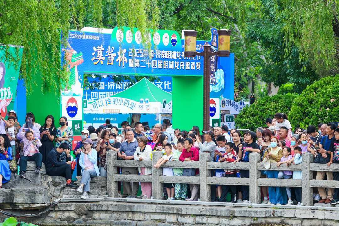 明湖龙舟赛,既是传统民俗与现代竞技的完美融合,也是济南“以水为媒、以文塑城”的生动实践。本届明湖龙舟文化节自5月31日持续至6月2日,除赛事外,现场设置文化市集、非遗展示、民俗体验、特色品牌推介、趣味游戏等丰富多彩的主题活动,剪纸、糖画、面塑、漆艺等非遗技艺令市民游客大饱眼福,趣味投壶、射箭等互动游戏吸引大批游客参与并乐在其中。金典有机龙舟节展区,绿意盎然的诗意布景和趣味十足的互动体验,成为众多游客的打卡必选。一系列精彩活动,为市民游客打造端午民俗新体验和体育消费新场景,在收获假日欢乐的同时,沉浸式感受传统民俗文化的独特魅力。