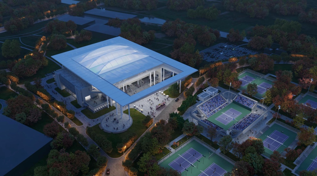 此次升级改造将在2号馆建筑上方加建可开启屋盖。改造后的屋盖将覆盖观众看台和比赛场地,可防风防雨,在恶劣天气条件下也能顺利举行赛事活动,不仅提高了赛事安排的灵活性和连续性,还提高了整体的服务质量,并且造型与中央场地协调一致,满足ATP赛事使用要求,将为观众提供更加稳定且优质的观赛体验。