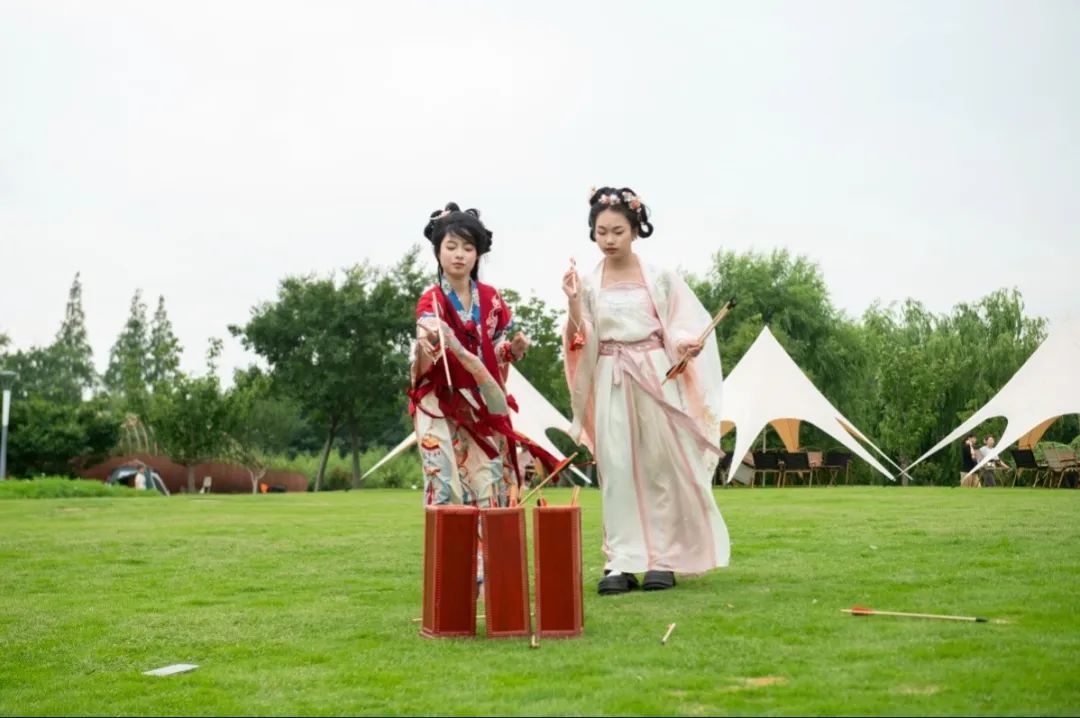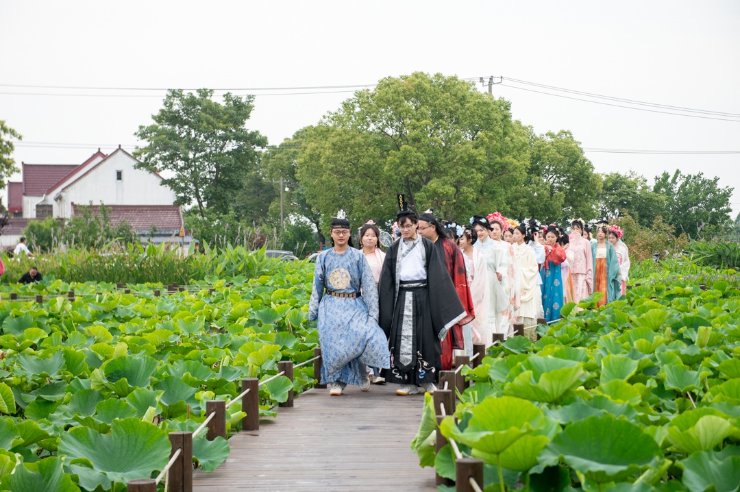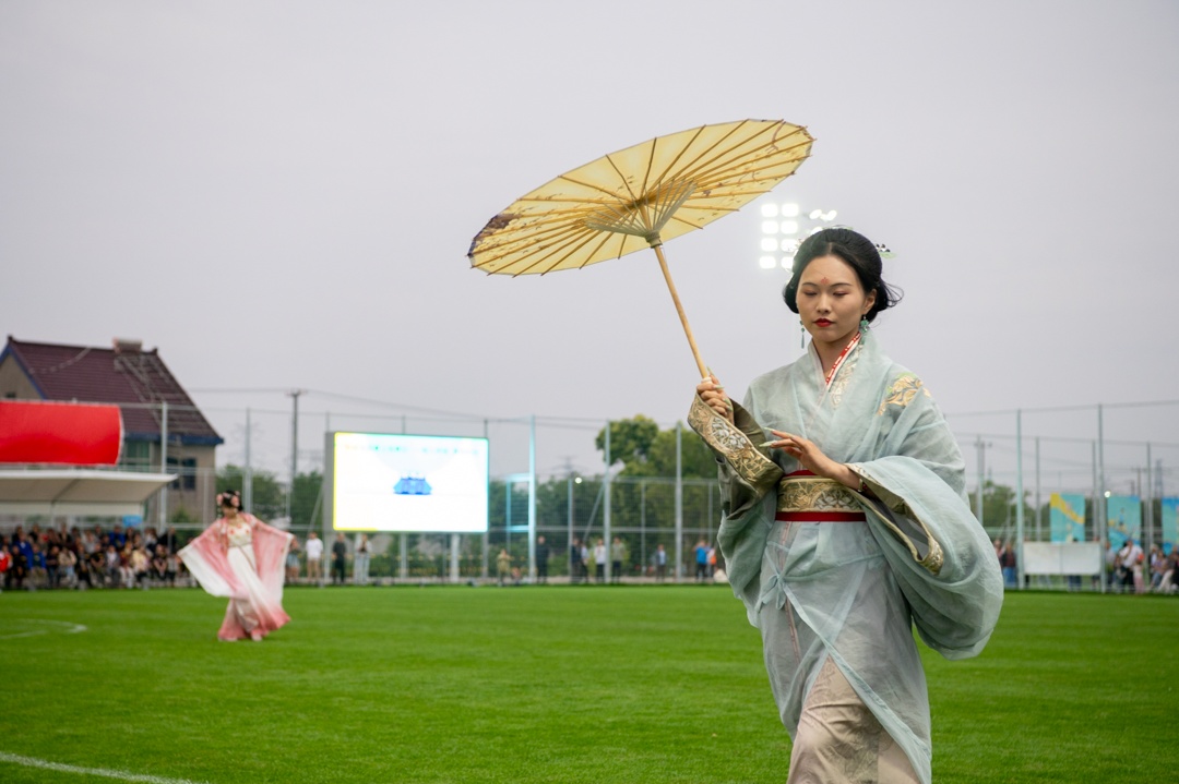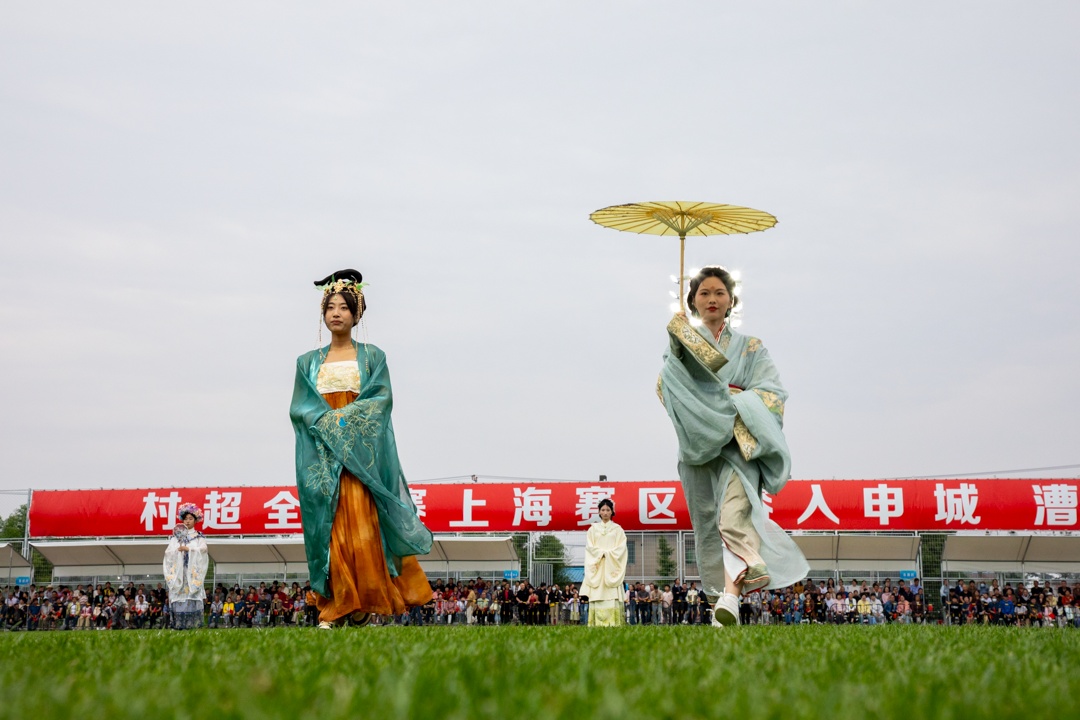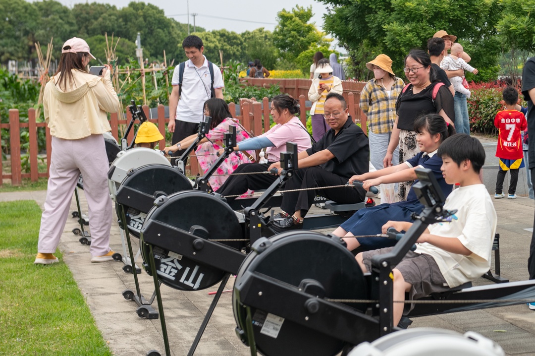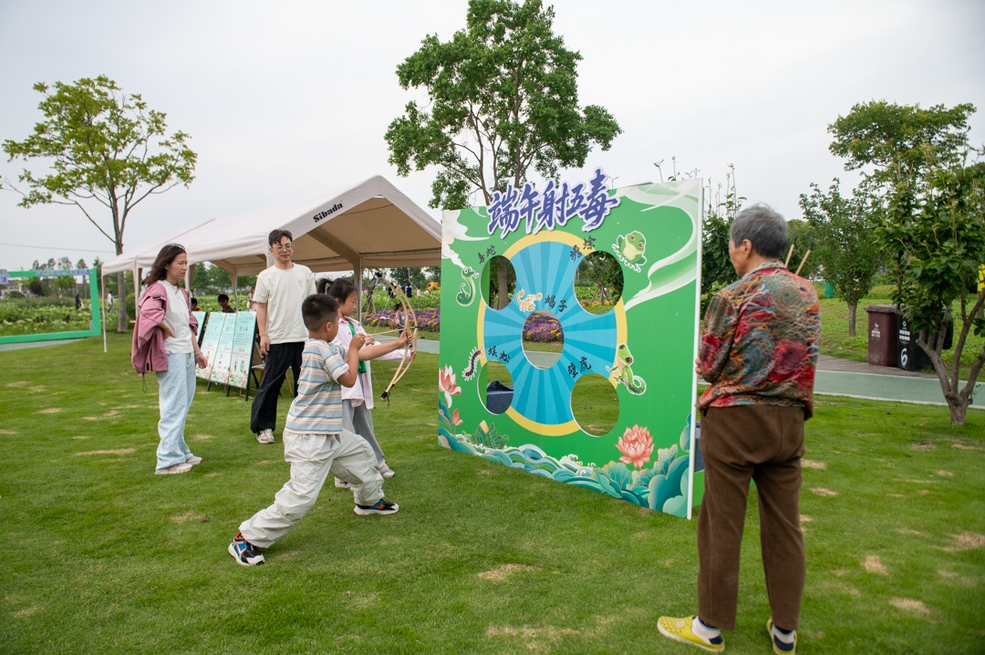 5月31日,上海漕泾郊野公园化身端午文化狂欢的海洋。 这场兼具体育竞技激情与乡村文化韵味的盛会,以独特的端午主题为市民和游客呈现了一场乡村嘉年华,同时为乡村振兴注入了强劲活力。 水岸竞渡:传统与现代的碰撞 水库中心河上,一艘艘赛艇如离弦之箭划开碧波,桨影翻飞间溅起的水花引来阵阵喝彩。岸边人头攒动,不少村民举着手机记录这激动人心的瞬间。“加油!再快一点!”孩子们兴奋地蹦跳着,为选手们呐喊助威。 与此同时,一旁酷岛造梦营草坪上的陆上划船器接力赛正热火朝天,来自漕泾镇各村居的选手们憋红了脸“隔空较劲”,围观村民的加油声一浪高过一浪,有的甚至自发当起了“临时教练”,在一旁指导发力技巧。 “没想到划船器比真船还累!”代表东海村的参赛选手小李擦着汗笑道,“但能和村民一起组队,感觉特别带劲!”河面与草坪,传统赛艇与现代器械,在这场水岸竞渡中碰撞出别样的火花。 传统风俗:穿越千年的端午雅集 藕遇公园池畔栈道,数名汉服爱好者广袖翩跹。00后大学生小屠笑着徜徉在荷叶的海洋:“年年岁岁花相似,岁岁年年人不同。今天又认识了很多新的‘同袍’。” 在藕遇公园一旁的草坪上,小朋友们紧捏弓箭,一拉一放,在空中划出一道弧线,箭尾正正好好穿过“五毒”。 还有体验投壶项目的游客围在投掷线前,手臂轻抬,只听“咚”的一声,竹箭擦过壶沿,弹落在地,周围响起善意的起哄声。 “食遇小四缘”内,柴火灶台炊烟袅袅,阿婆们手把手教游客包四角粽,粽叶一卷、糯米一填,再塞进两粒本地甜枣,裹紧的不仅是传统滋味,更是代代相传的匠心。 村超之夜:沸腾的不只是足球 随着裁判一声哨响,村超联赛正式开战。 身着各色队服的球员们在场上飞奔,足球在草皮上划出一道道优美的弧线。 场边观众席早已座无虚席,村民们挥舞着助威旗帜,呐喊声此起彼伏。 左右滑动查看更多 傍晚,足球乐园的灯光骤然亮起。水窠里·大学村的学生、数字游民、漕泾村民等组成的“混搭模特队”引爆全场,他们穿着环保主题设计服装、现代风服装、特色服装及华服霓裳,以绿茵场为舞台、文化为内核,秀出乡村新风尚。 左右滑动查看更多 中场歌舞表演精彩纷呈,现场氛围热烈。 与此同时,村民身着传统盐民服饰为现场观众、球迷送上特色美食。 夜市摊位上,传统美食海棠糕与塌饼同台“打擂”,刚出锅的大肉粽引得游客排起长队。 终场哨响,金山卫八一村足球队7:0力克张中校友足球队,漕泾水库村足球队2:1战胜崇明蓝色风暴足球队。村舞欢腾燃动乡野,村歌嘹亮响彻云霄。 通讯员:沈宏阳