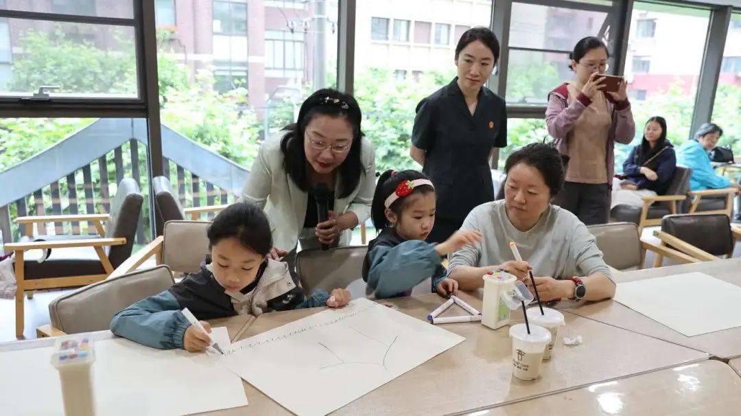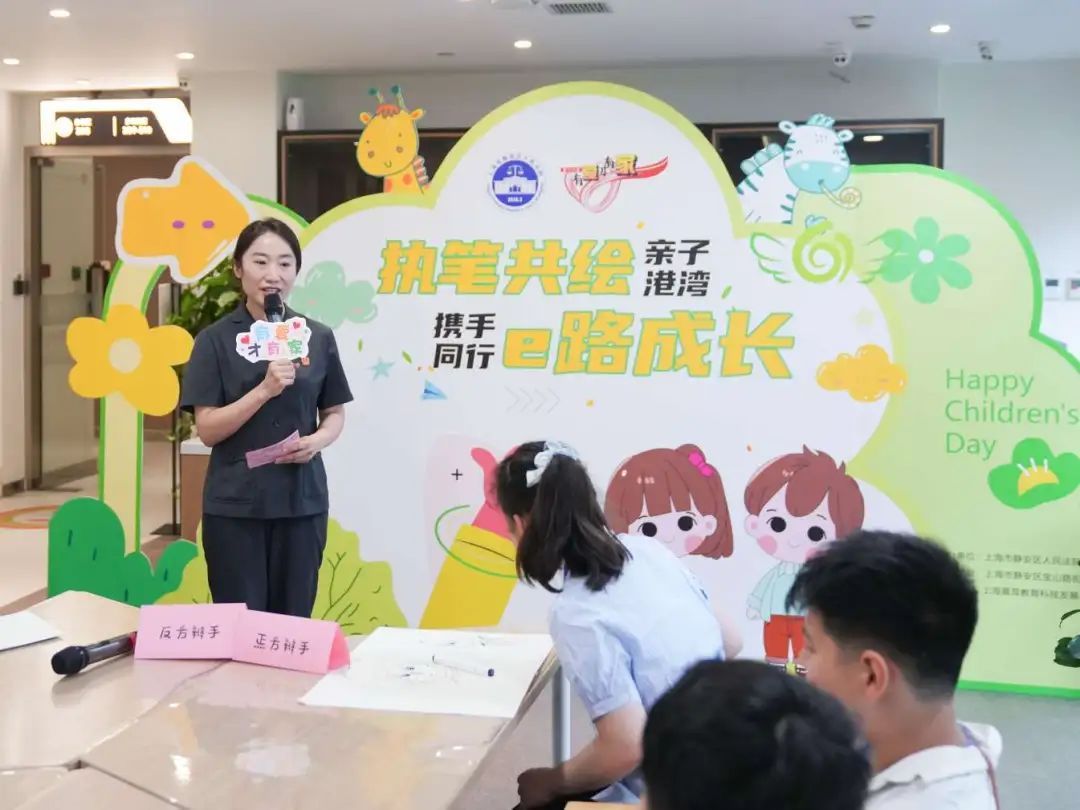 本次活动的主题是“执笔共绘亲子港湾,携手同行e路成长”。在“执笔共绘亲子港湾”环节,家长和孩子们围坐在长桌前,通过色彩碰撞传递情感。在“携手同行e路成长”环节,家长和孩子聚焦《未成年人网络保护条例》的“网络护苗”行动开展讨论和交流。