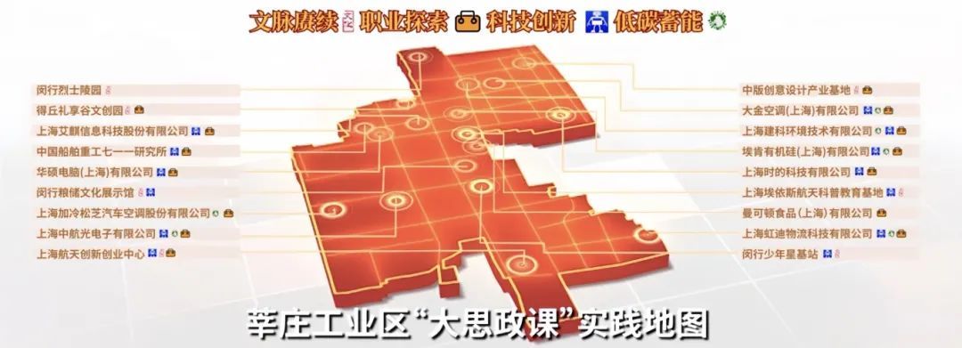 活动现场,莘庄工业区正式发布“大思政课实践地图”。该地图覆盖从幼儿园到高中的全学段,依托园区丰富的产业基础、科技资源、人文底蕴与生态环境,构建多维沉浸式学习场景,引导学生逐步探寻职业方向、理解科技内涵、传承文化精神、践行绿色理念。