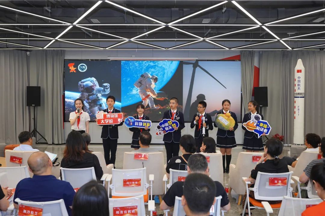 来自天恒名都幼儿园、闵行区第二实验小学、七宝中学附属鑫都实验中学的学生们现场依次进行航天主题项目汇报,内容涵盖《恒娃探月记》《逐梦航天 圆梦闵行》《叩问苍穹向未来 领巾闪耀新时代》等多个项目,集中展现了园区“大思政课”一体化建设的阶段性成果与实践风采。