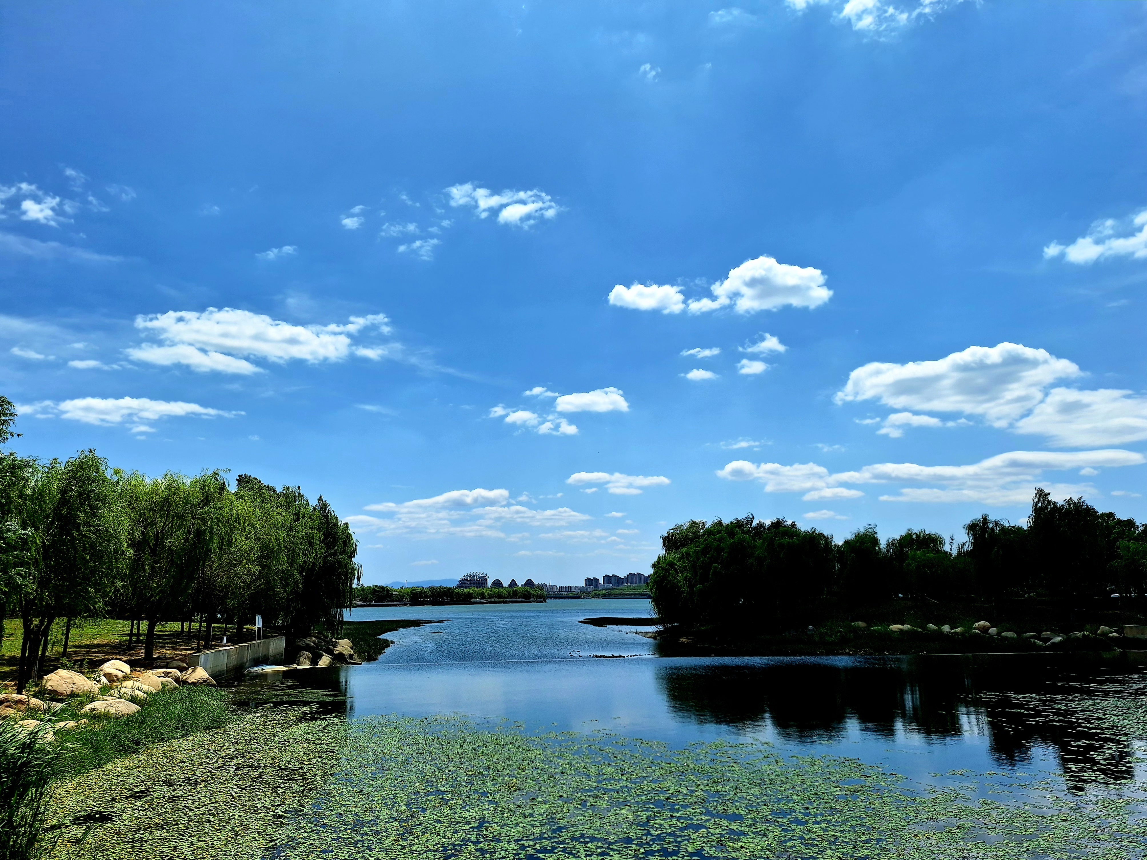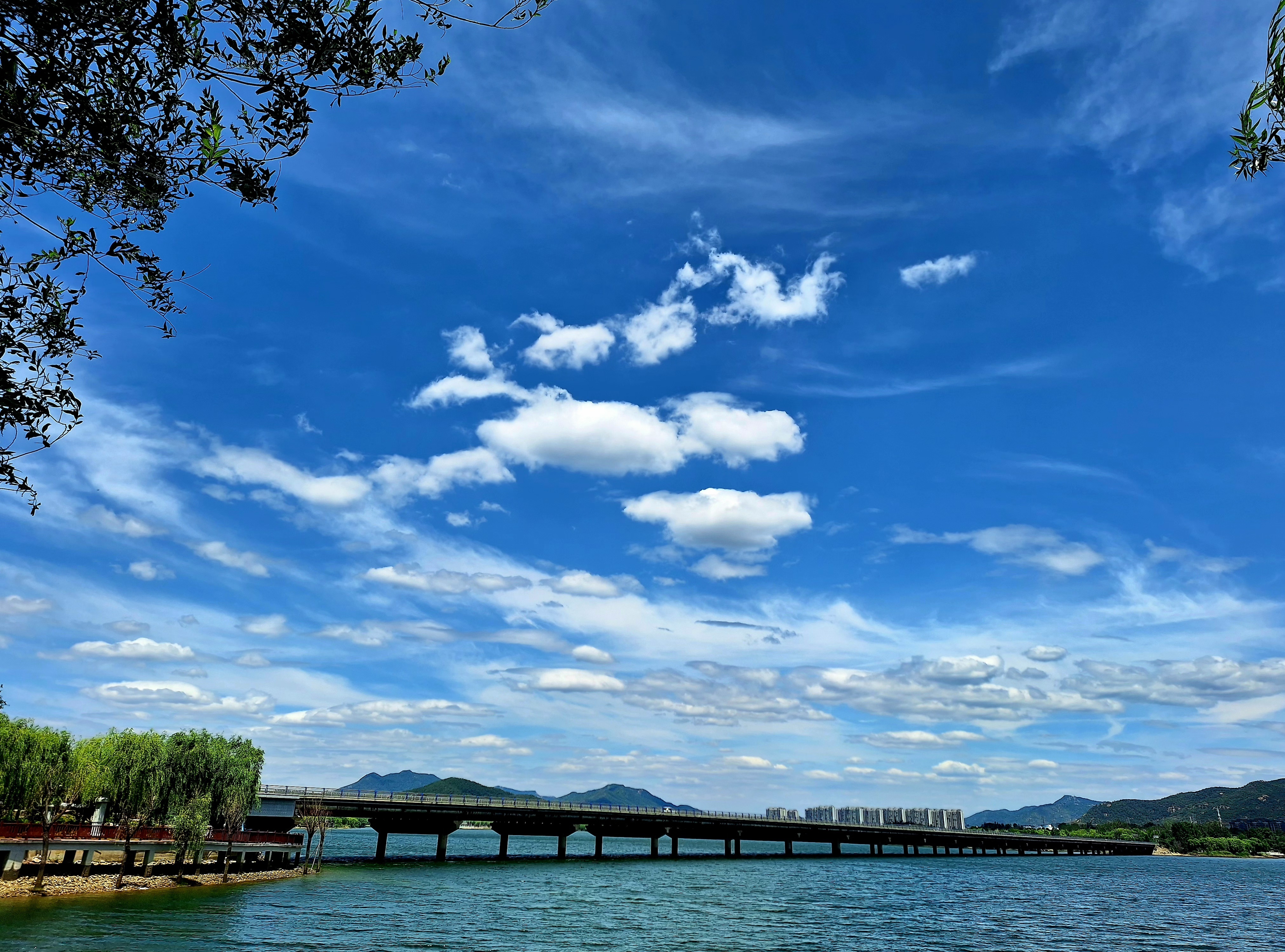 6月16日清晨,泰安天平湖畔天空碧空如洗,朵朵白云如同棉花糖般点缀在蓝天之上,美得令人心旷神怡。湖畔的柳树翠绿满枝,轻柔的柳丝随风摇曳,与蓝天白云、碧波荡漾共同编织成一幅生机勃勃的夏日景致。