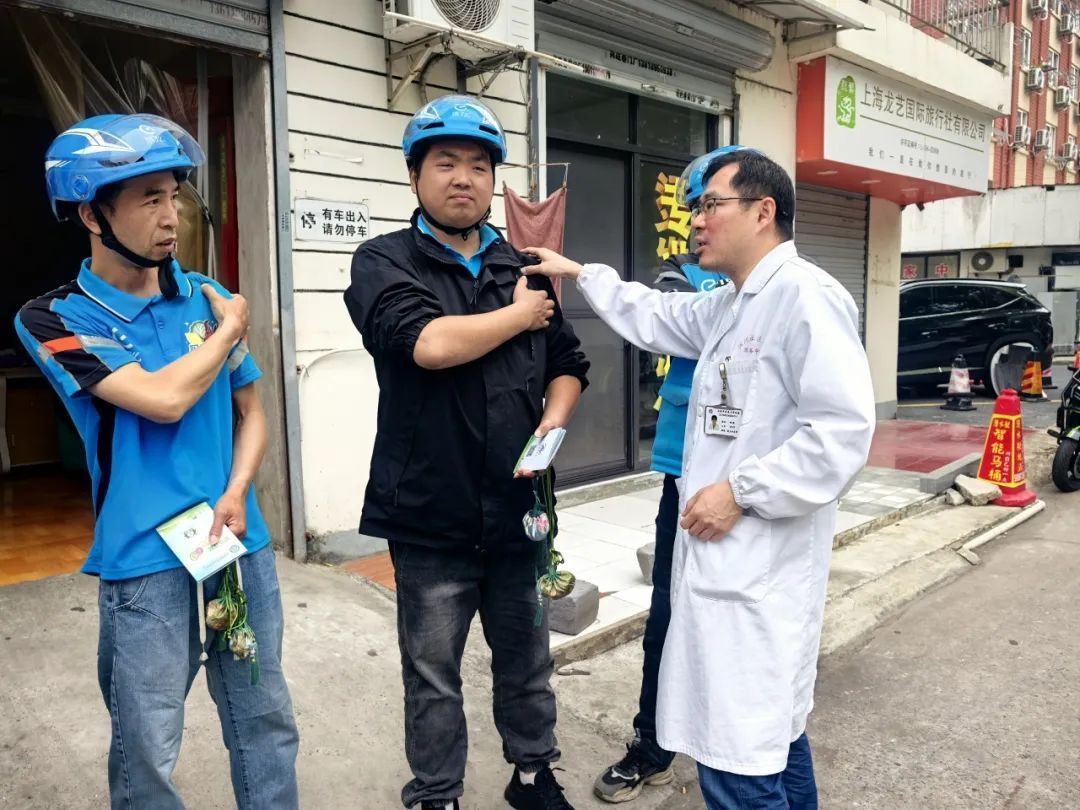 近日,江川路街道金平(南)街区党支部携手江川社区卫生服务中心中医伤科,带着专业医疗服务与中医香囊走进辖区外卖站点,为骑手们送上了健康关怀。