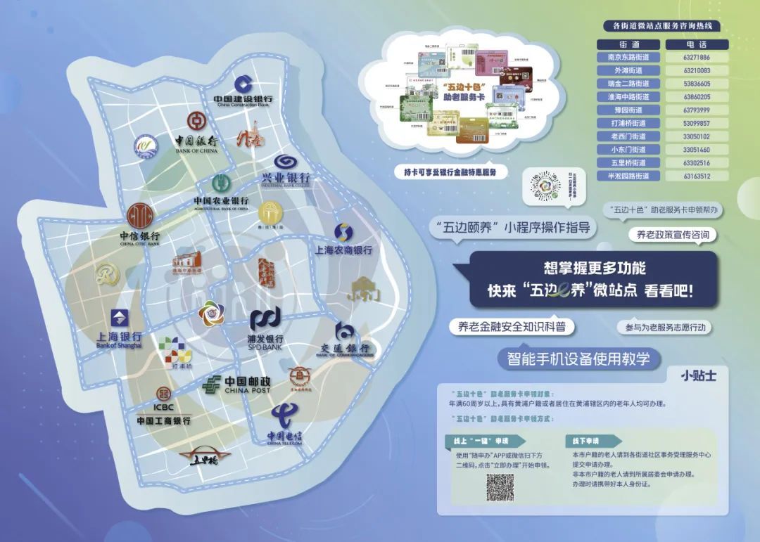 黄浦区将以“五边十色”助老服务卡为媒介,以“五边e养”微站点为载体,探索“卡-站”联动服务模式。依托银行邮政网点、运营商营业厅现有服务窗口或柜台,嵌入设置“五边e养”服务区域,提供助老卡申领帮办、小程序操作指导、养老政策咨询、智能手机教学、养老金融知识科普等一站式服务,提升老年人服务的可得性与便利性。同时推进助老卡应用场景与智慧养老阵地建设,探索“一卡联通服务、一站集成功能”的服务模式。