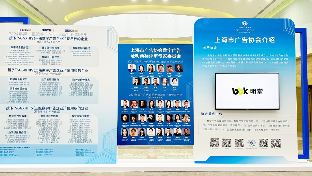 2024年,bbk!明堂及其旗下3家子公司均通过了高标准的资质审核,被授予数字广告证明商标使用权,助力上海打造“国际数字广告之都”。2025年,bbk!明堂当选上海市广告协会副会长单位,创始人兼CEO于玮麟当选上海市广告协会副会长,这不仅是对bbk!明堂推动行业创新与生态协同的实质性褒奖,也充分印证了其在商业价值创造与行业生态建设中所展现的双重担当。